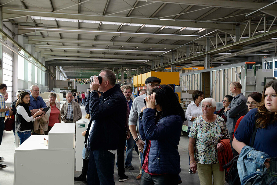 Neben Impressionen aus der Historie konnten die Besucher mit der App „ALHO Experience“ auch die virtuelle Welt von ALHO entdecken. Der Rundweg durch die Produktion machte den gesamten Weg vom Bau der Stahlrahmen bis zum fertig ausgestatteten Raummodule erlebbar. Zudem konnten sich die Besucher über Ausbildung und Karrieremöglichkeiten bei ALHO informieren.