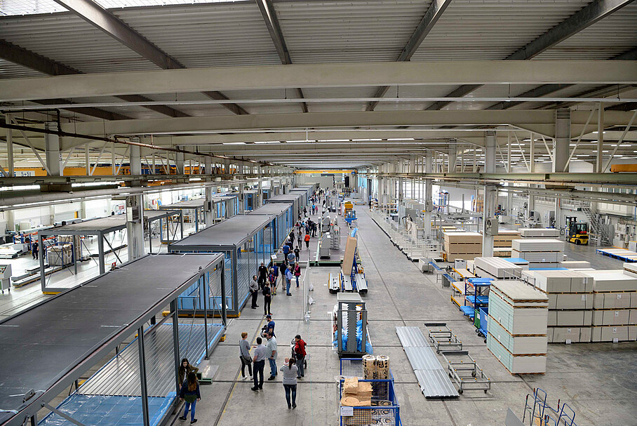 Ein Highlight im Produktionsrundweg war das Angebot, eine in Modulbauweise ausgeführte Musterwohnung zu besichtigen. Mit dem Geschosswohnungsbau hat ALHO ein neues Produkt entwickelt. Erste Projekte für VONOVIA, die grösste deutsche Wohnungsbaugesellschaft, wurden bereits realisiert.