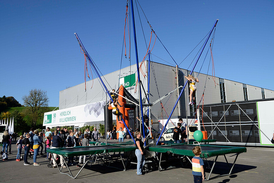 Der Tag der offenen Tür lockte rund 5000 Besucher auf das ALHO Firmengelände. Ein Erlebnispfad durch die Produktionshalle bot den Besuchern spannende Einblicke in die Welt des Modulbaus und in die Leistungsfelder des Unternehmens.