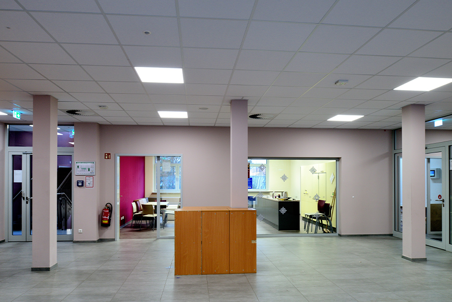 Durch den ausschliesslichen Einsatz von gütegeprüften Materialien deutscher Markenhersteller im Innenausbau ist die Grundlage für eine gute Qualität der Innenraumluft gelegt. Was im Inneren moderner Modulbauten stattfindet, spiegelt sich auch an den Fassaden wider – mit nachhaltigen und gestalterisch wertvollen Materialien und grossen Fensterflächen, die Licht und nicht zuletzt Frischluft ins Gebäude holen. Gerade bei klassischen Schultypen, die weniger Platz pro Schüler bieten, spielt der Aspekt des Lüftens eine besonders wichtige Rolle. Hier sind in Hinblick auf gute Luftqualität grosse Fensteröffnungen die einfachste Methode: Sie sorgen für eine gute Durchlüftung und für einen schnellen, unkomplizierten und effektiven Luftaustausch auf klassischem, mechanischem Weg. Doch in der kalten Jahreszeit sind stetig geöffnete Fenster keine Option mehr. ALHO stattet Schulgebäude deshalb mit modernen, effektiven und smarten Lüftungsanlagen aus, die eine kontinuierliche, konditionierte Frischluftzufuhr gewährleisten und mit hocheffektiven Filtern ausgestatteten sind, wie sie auch bei luftdicht konzipierten Passivgebäuden Einsatz finden. Sie sind sehr energiesparend und verfügen über eine effiziente Wärmerückgewinnung.