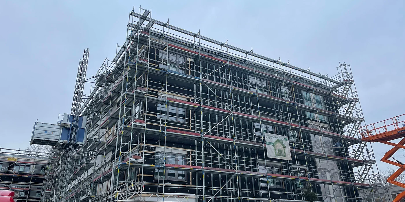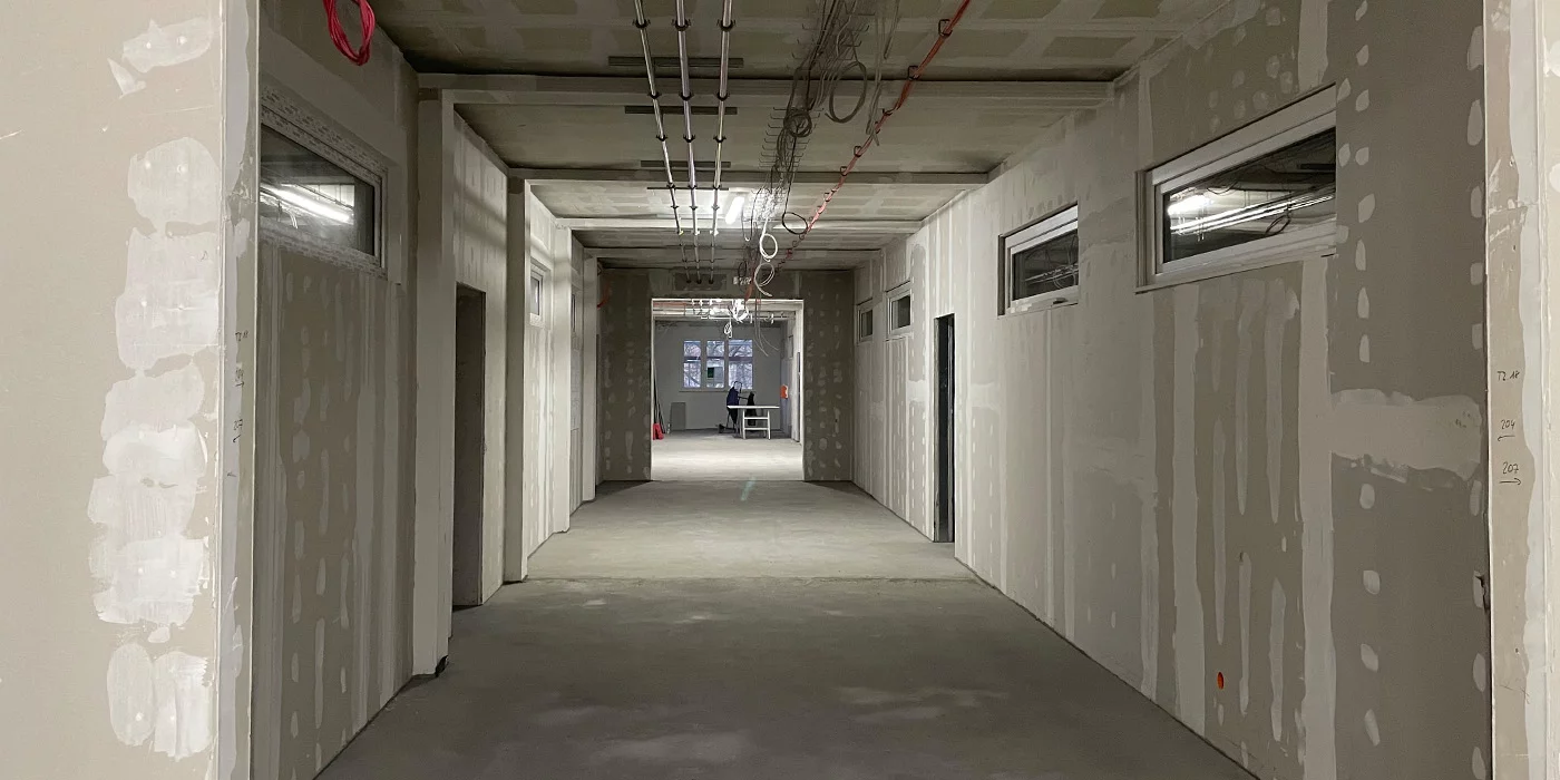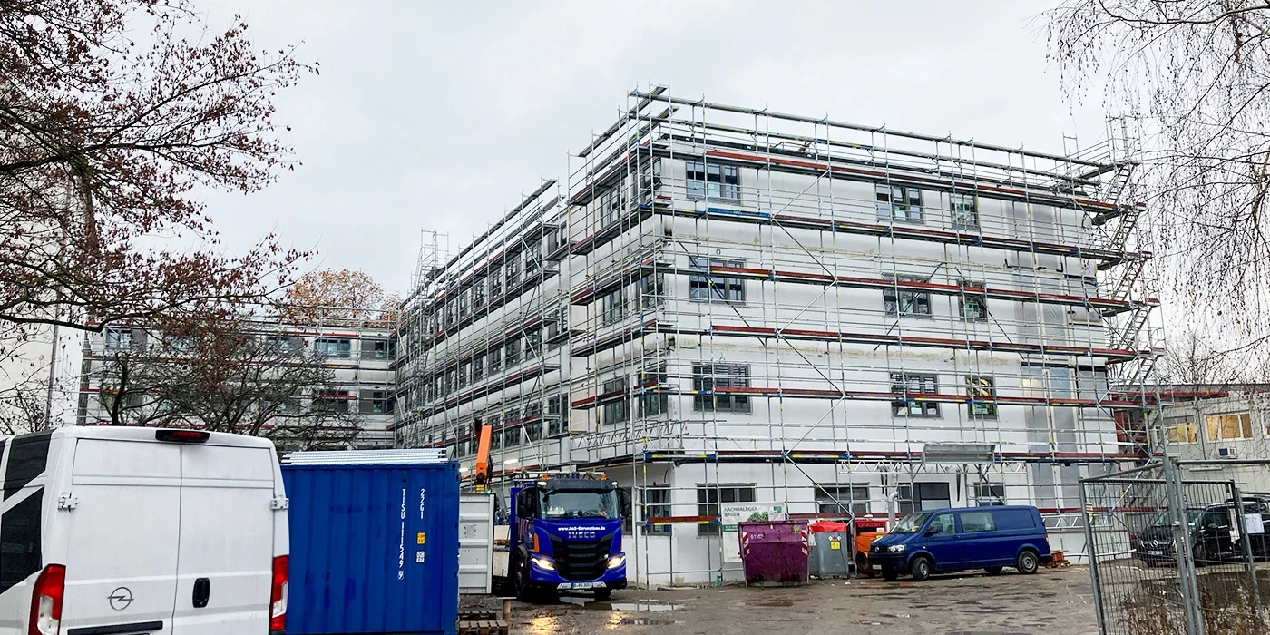 Nachdem zum Ende letzten Jahres das Richtfest gefeiert wurde, konnten wir in den ersten beiden Monaten in 2023 den Innenausbau weit voranbringen. Der Estrich ist fertiggestellt, in den Treppenhäusern wurde moderne Profilglasfassade verbaut und auch die restlichen Fassadenarbeiten sind in vollem Gange. Parallel beginnen nun auch die Arbeiten an den Aussenanlagen.