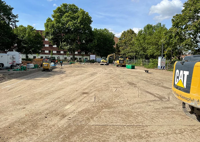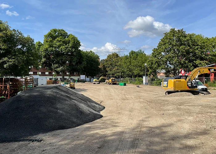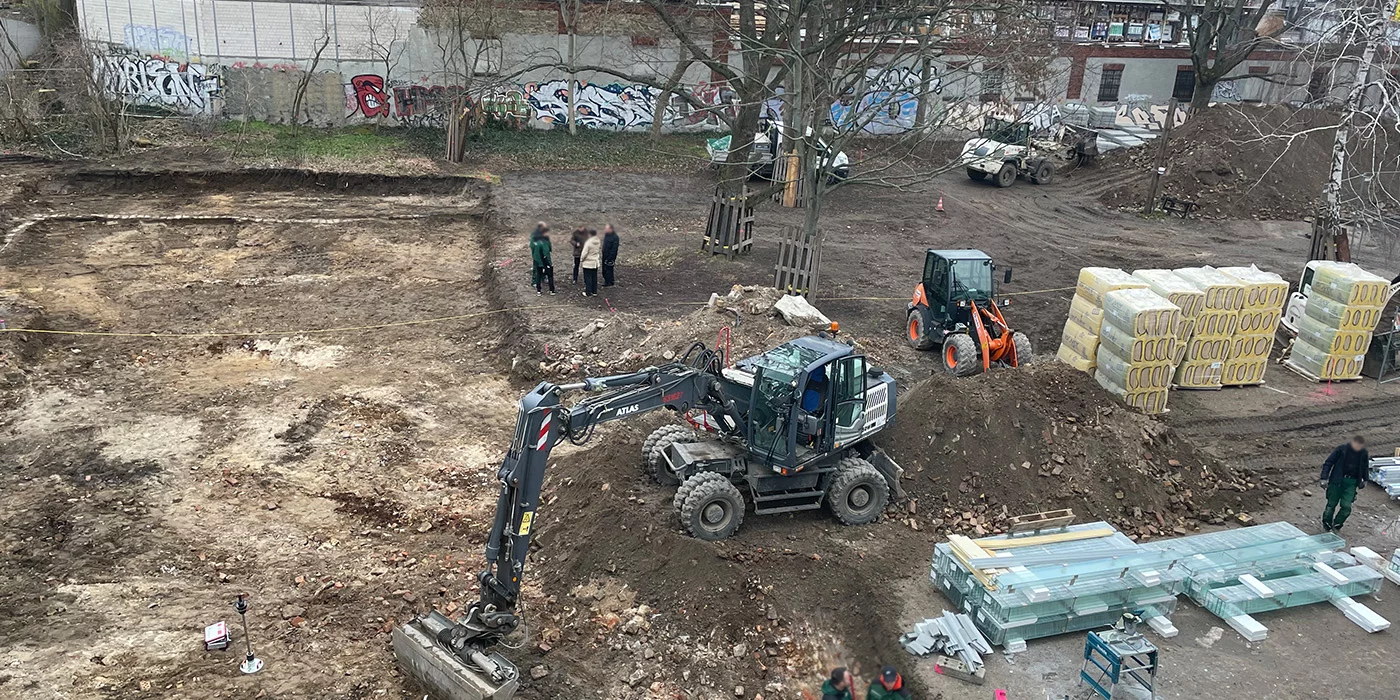 Schwere Maschinen rollen an: heute wird nach wochenlanger Planung endlich der erste Schritt gemacht. Einige Tonnen Erde werden bewegt, Ver- und Entsorgungsleitungen gelegt, Dämmung für die Bodenplatte verlegt und Schalungen für Fundamente erstellt, um das Baufeld für den Baubeginn vorzubereiten. Knappe 10 Tage sind wir nun erstmal mit Vorbereitungen beschäftigt, bevor die Bodenplatte gegossen werden kann.