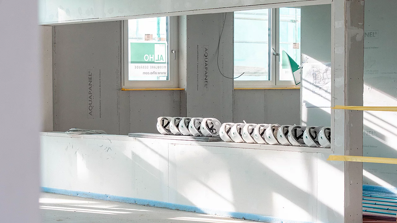 Dass dieses Tempo möglich ist, liegt maßgeblich auch an unserer ALHO Modulbauweise. Der Neubau besteht aus 24 dreidimensionalen Raummodulen, die im November 2025 in unserer ALHO Raumfabrik in Friesenhagen witterungsunabhängig und unter strengen Qualitätskontrollen vorgefertigt wurden. Die Anlieferung und Montage erfolgten im Dezember 2025 – innerhalb weniger Tage stand der erweiterte Rohbau. Direkt im Anschluss begannen die Ausbauarbeiten.