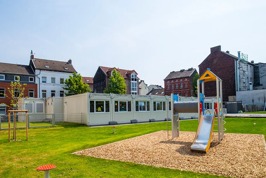 Gleich zwei Interimskitas hat FAGSI in Stolberg realisiert und so insgesamt 482 qm Raum für Betreuung geschaffen.