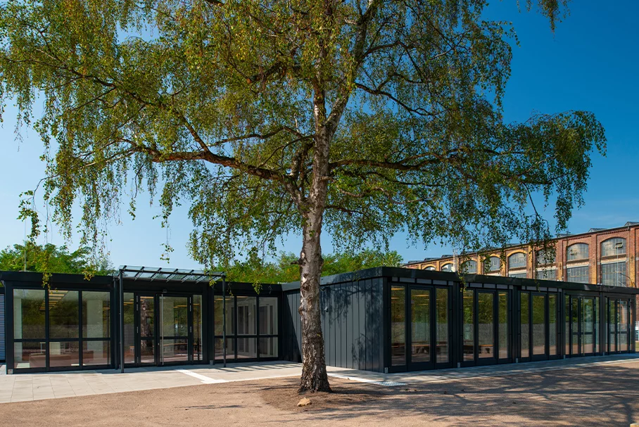 Die Elsa-Brändström-Schule (EBS) in Hannover wurde 1954 gegründet. Durch ihre fortschrittliche Arbeit im Unterricht und der Erziehung, hat sich die Schule den Respekt und das Vertrauen vieler Eltern erworben. Die Folge ist eine seit Jahren stark ansteigende Schülerzahl. Aus diesem Grund wird derzeit ein Neubau errichtet. Bis zur Fertigstellung des zusätzlichen Schulgebäudes dient eine Containeranlage zur Unterbringung der Schülerinnen und Schüler. Das temporäre Schulgebäude wurde in den Sommerferien 2020 innerhalb von nur sechs Wochen Bauzeit vor Ort errichtet und konnte pünktlich zu Beginn des Schuljahres 2020/21 in Betrieb genommen werden. Insgesamt wurden 27 Einheiten der Baureihe FAGSI ProENERGY zu einer eingeschossigen, L-winkelförmigen Anlage mit 440 qm Bruttogeschossfläche verbaut.