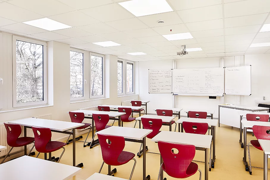 Schulen sind komplexe Bauwerke mit einem breit gefächerten, vielseitigen Raumprogramm und klar definierten Raumgrößen, mit strengen Brandschutzauflagen und individuellen Entwurfs- und Gestaltungsanforderungen – je nach pädagogischem Konzept. So gleicht eine Schule selten der anderen und muss sich doch an gewisse Gesetzmäßigkeiten halten. Wird sie als durchgängige Lernlandschaft konzipiert, können Räume wie Aula, Foyer oder Mensa ins Unterrichtsgeschehen einbezogen werden. Durch die gemeinsame, gut organisierte Nutzung des vorhandenen Raums über den gesamten Schultag hinweg, stehen den Schülerinnen und Schülern sowie dem pädagogischen Team eine größere Raumvielfalt und zugleich ein Plus an Fläche zur Verfügung. Und – auch das hat sich gezeigt – es wird zukünftig sehr viel mehr noch als bisher darauf ankommen, dass Gebäude auch hygienetechnisch hochwertig konzipiert, ausgestattet und damit in viele Richtungen zukunftsstark aufgestellt sind.