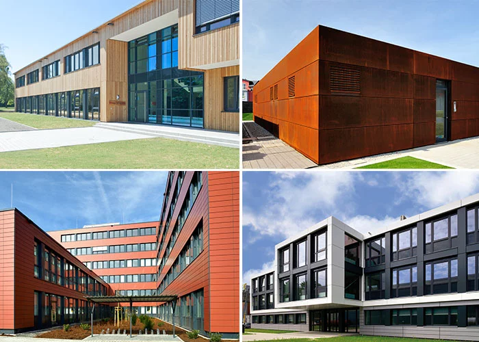 In der Fassadengestaltung ist alles realisierbar, was auch konventionelle Bauweisen bieten - ob großflächige Verglasungen, Putz auf Wärmedämmverbundsystem oder vorgehängte, hinterlüftete Fassadenelemente in Holz, Metall, Keramik oder Glas. Wenn es gelingt, architektonische Kreativität und standardisierte Leitdetails in Einklang zu bringen, entstehen Modulbauten, die alles bieten, was bereits Le Corbusier, Meisterarchitekt der „Klassischen Moderne“, für die Gestaltung zeitgemäßer Architektur forderte: zweckmäßige, funktionale und wirtschaftliche Entwürfe. Ein Faktum muss jedoch hinsichtlich der Geometrie des Gebäudes akzeptiert werden: Organische Gebäudekubaturen sind im Modulbau nur schwer zu realisieren und meist kostenintensiv.
