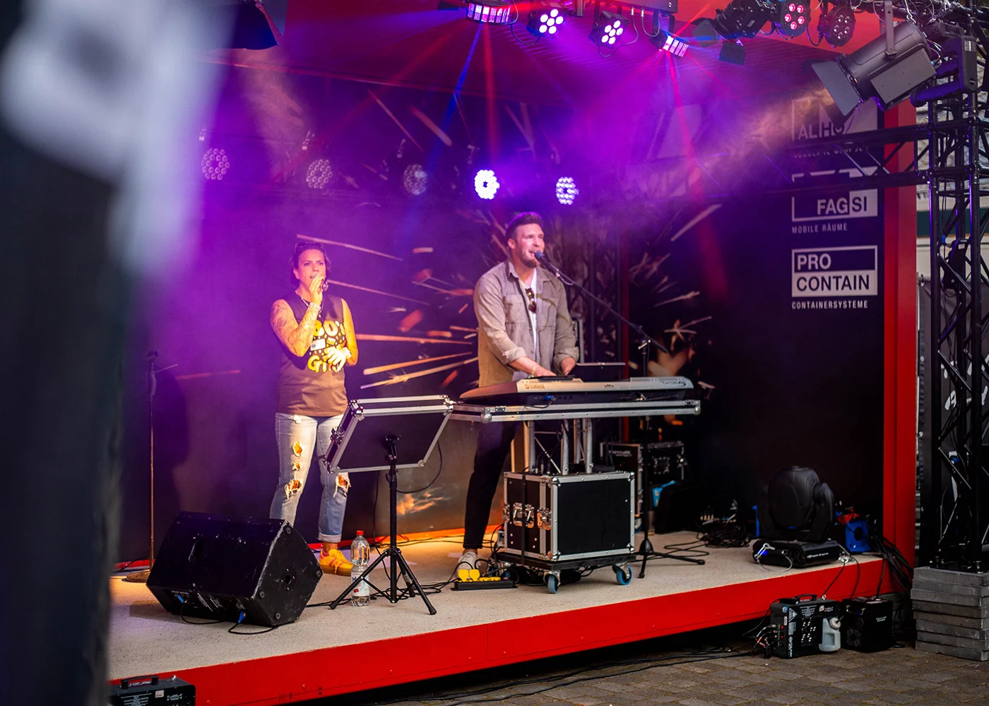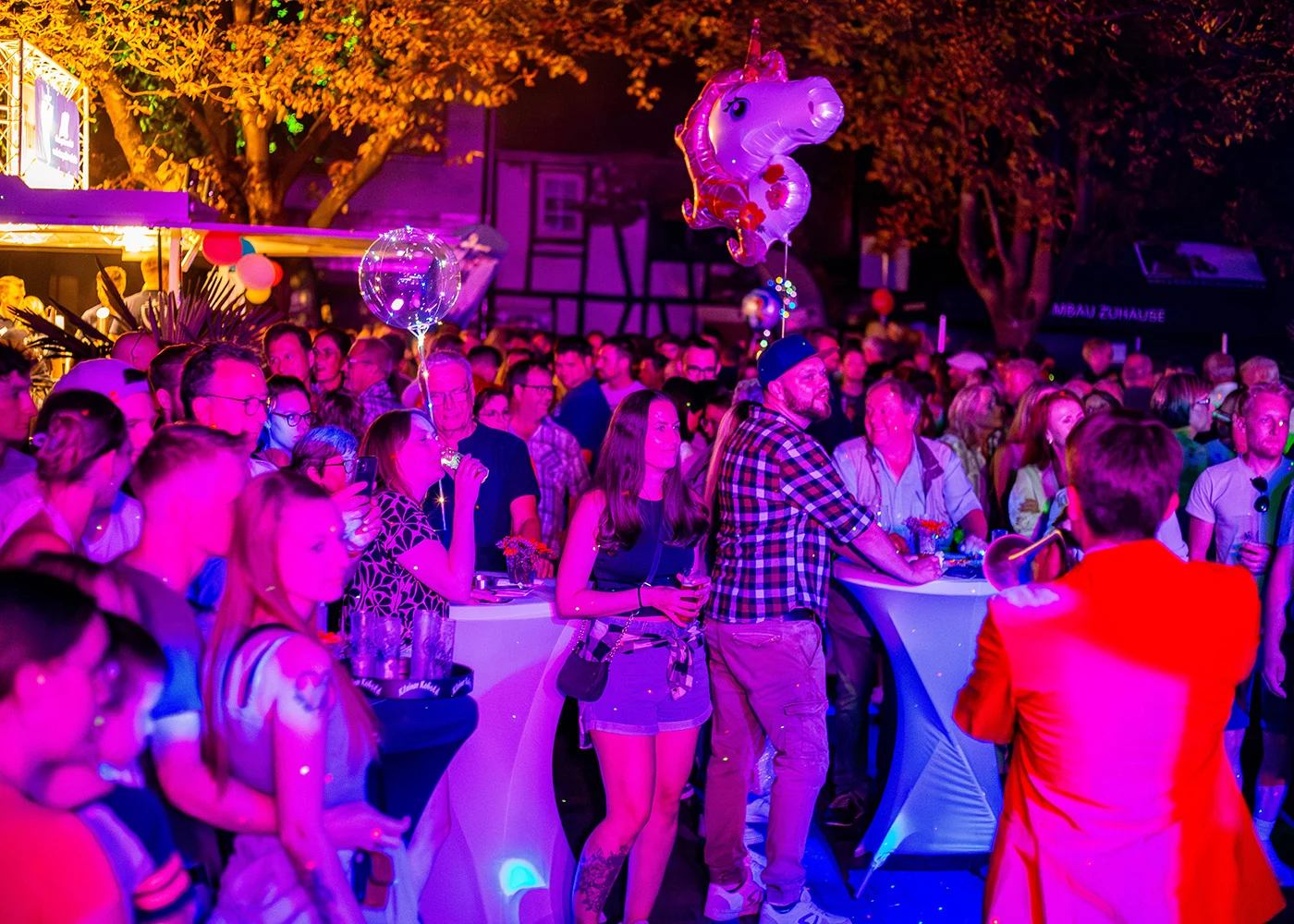 Bunte ALHO Kunstwerke schmückten die Straßen in ganz Morsbach. Kaum jemand konnte uns an diesem Abend übersehen. Knallige Farben, gute Musik, leckeres Essen und kreative Aktionen lockten die Besucher zu unserem Stand. Die Funkengarde Morsbach sorgte für volle Gläser mit kühlen Getränken. Währenddessen heizten das Duo Supreme und unser DJ die Stimmung an, sodass zu späterer Stunde das Tanzbein geschwungen wurde. Unsere Azubis kümmerten sich um das leibliche Wohl und grillten leckere Würstchen und vegetarische Alternativen. Ob auf unseren Banden, an den Armen der Besucher oder auf den T-Shirts, die gegen eine kleine Spende mit dem Kunstbike individuell gestaltet werden konnten, überall leuchteten die Farben und sorgten für gute Laune.