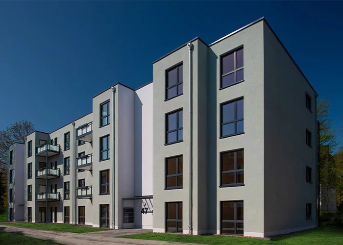 Als Mitglied des Verbandes der Wohnungswirtschaft Südwest ist die DreieichBau unter dem Bundesverband deutscher Wohnungswirtschaft organisiert. In Anlehnung an den Rahmenvertrag zum seriellen Bauen,bei dem ALHO zu den Gewinnern zählte, realisierte sie 2020 ein sozial gefördertes Gebäudeensemble an der Hainer Chaussee in Dreieich. Zur Referenz.