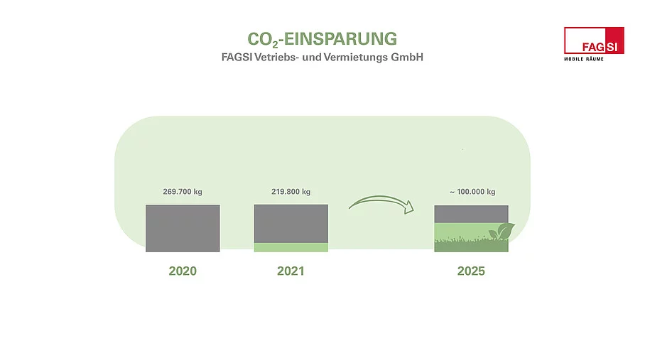 Aus gesammelten Daten zum Energieverbrauch werden Maßnahmen zur Optimierung hergeleitet, wie beispielsweise der Bezug zertifizierten Ökostroms, der den Strom aus konventioneller Stromerzeugung ersetzt. Daraus resultiert für die gesamte Unternehmensgruppe ein Einsparpotential von ungefähr 34 %, allein für FAGSI konnten 2021 bereits 18 % des Vorjahreswertes eingespart werden.