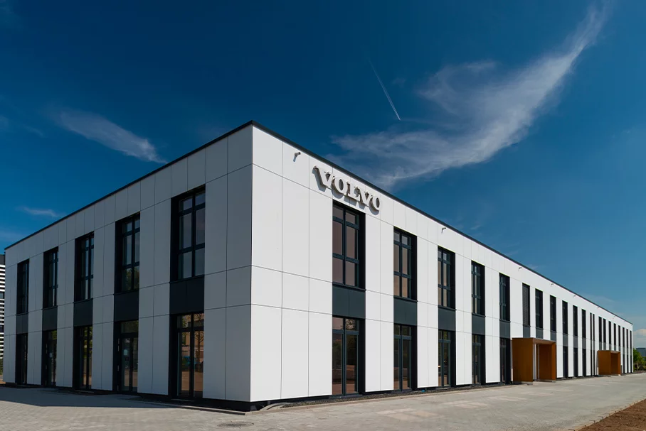 „Außerdem ist Stahl ein wirklich nachhaltiges Produkt, weil es zu 100% recyclebar ist“. Thomas Weber, Geschäftsführer der Volvo- Immobiliengesellschaft AGS, fasst zusammen: „Der Neubau ist wirklich sehr gelungen und zeigt genau das, was wir uns wünschten: Architektur ohne Effekthascherei, die dem Anspruch von Volvo an eine zukunftsfähige Immobilie gerecht wird.“