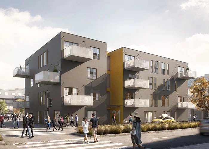 Der GdW Bundesverband deutscher Wohnungs- und Immobilienunternehmen e.V. lobte 2018 gemeinsam mit dem Bundesbauministerium und der Bundesarchitektenkammer (BAK) einen europaweiten Wettbewerb aus. Teilnehmen konnten renommierte Anbieter unterschiedlicher serieller Bauweisen in Verbindung mit einem Architekturbüro.