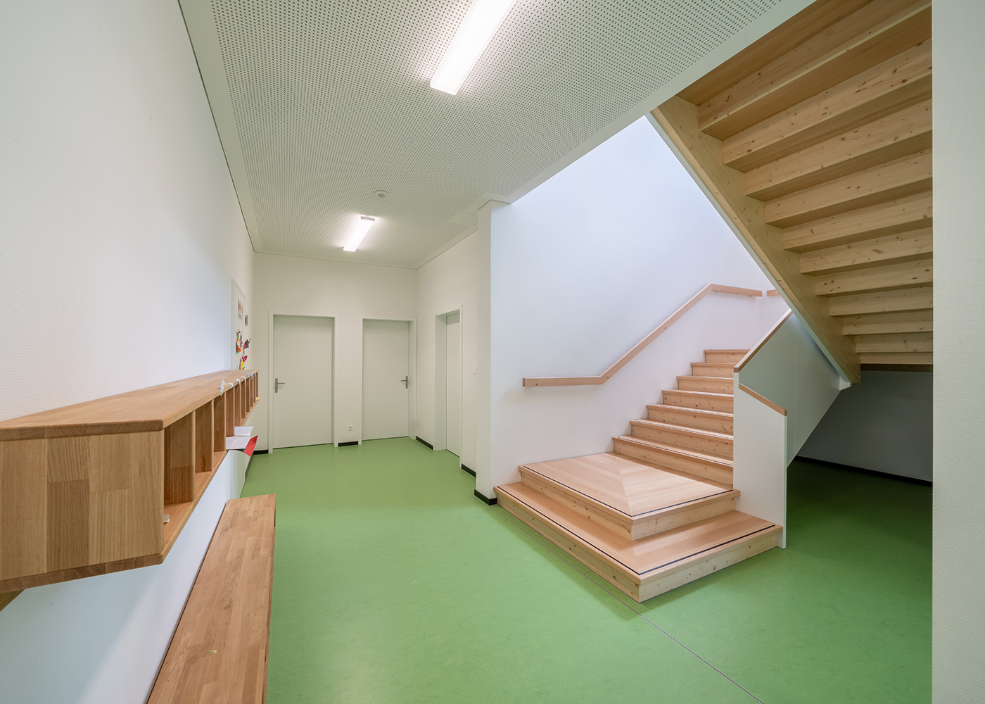 In Giebenach (Schweiz) hat ALHO im September 2024 den Neubau einer modernen Kindertagesstätte fertiggestellt. Das Gebäude bietet Raum für den Kindergarten sowie die erste und zweite Primarklasse. Besonderen Wert legt die Primarstufe Giebenach auf klassenübergreifende Projekte und ein starkes Gemeinschaftsgefühl. So arbeitet die erste Klasse eng mit dem Kindergarten zusammen, um den Kindern einen sanften und spielerischen Übergang in die Primarstufe zu ermöglichen.