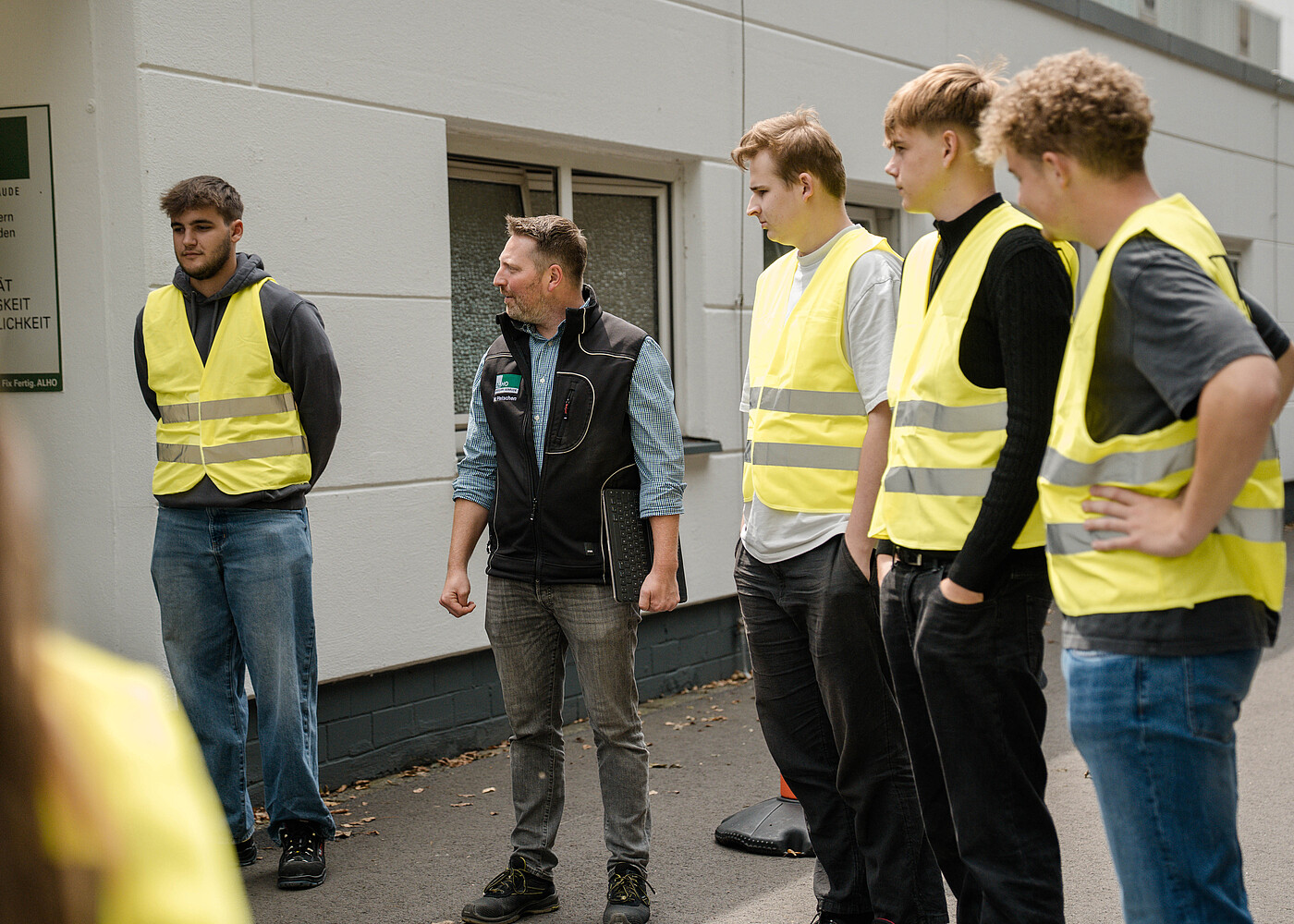 Der erste Ausbildungstag startete für unsere neun neuen Auszubildenden mit einem herzlichen Willkommen durch die Geschäftsführung und einer Vorstellung der ALHO Gruppe. Bei einem gemeinsamen Frühstück stellte sich der Betriebsrat vor und informierte über wichtige Themen rund um die Zusammenarbeit. Auch eine Sicherheitseinweisung stand auf dem Programm, damit alle gut vorbereitet in ihren neuen Arbeitsalltag starten können. Im Anschluss luden die Auszubildenden aus dem zweiten und dritten Lehrjahr zu einem gemeinsamen Grillen ein. In lockerer Atmosphäre konnten sich alle besser kennenlernen und erste Kontakte knüpfen. Den Abschluss des Tages bildete eine spannende Besichtigung der Produktion am Standort Steeg, bei der die neuen Azubis einen ersten Einblick in die Prozesse und Abläufe des Unternehmens erhielten. Heute gab es noch einen Ausflug in die Produktionshalle in Lichtenberg.