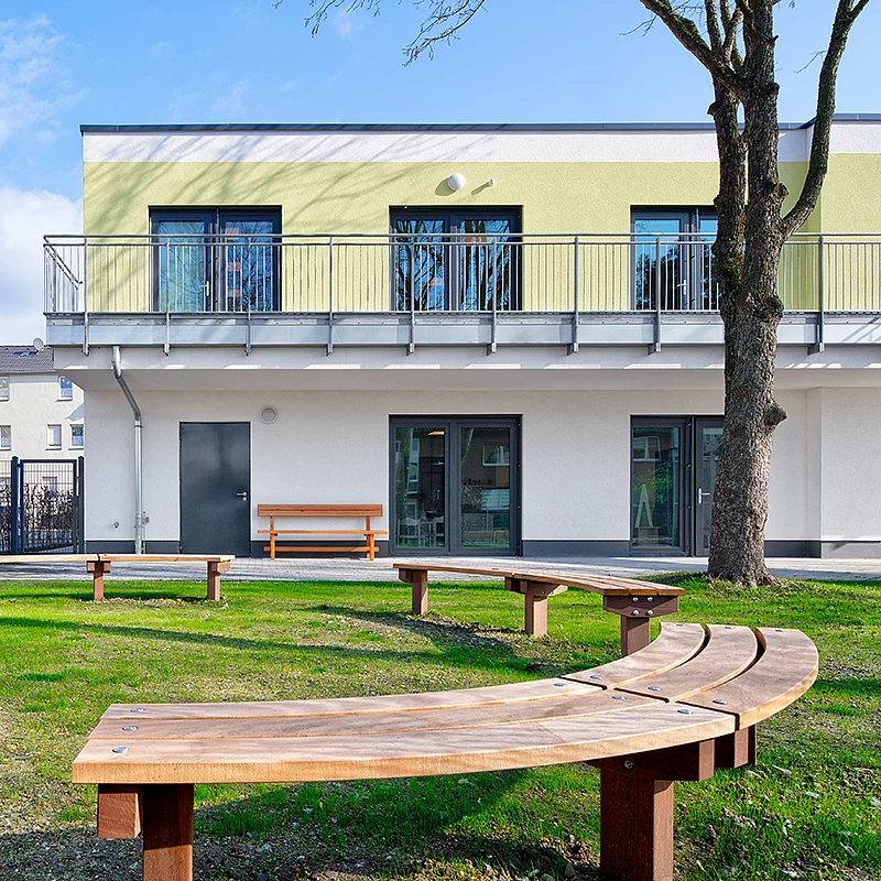 Ebenso wichtig wie die Verwendung umweltverträglicher Baustoffe ist deren gezielter Gebrauch. Wir setzen Holz bewusst und ressourcenschonend ein, da der Pro-Kopf-Holzbedarf in Deutschland bereits heute nicht mehr vollständig aus heimischen Ressourcen gedeckt werden kann. Die steigende Nachfrage an Holz als Ersatz für fossile Rohstoffe und die Verknappung der Vorräte durch Wetterextreme, Waldbrände und Schädlingsbefall erfordern einen sorgsamen und nachhaltigen Umgang mit der Ressource Holz. Wir fühlen uns verantwortlich für den Einsatz von qualitativ hochwertigem Holz, daher verwenden wir ausschließlich FSC- oder PEFC-zertifiziertes Holz aus verantwortungsvoller Forstwirtschaft. Der Recyclingweltmeister Stahl ergänzt den Rohstoff Holz perfekt: 99 % des Baustahls werden recycelt und ganze 88 % davon werden eingeschmolzen und zu neuem Stahl verarbeitet. Durch den Einsatz von Grünem Stahl kann eine zusätzliche Einsparung von ca. 30 % CO₂ erreicht werden.