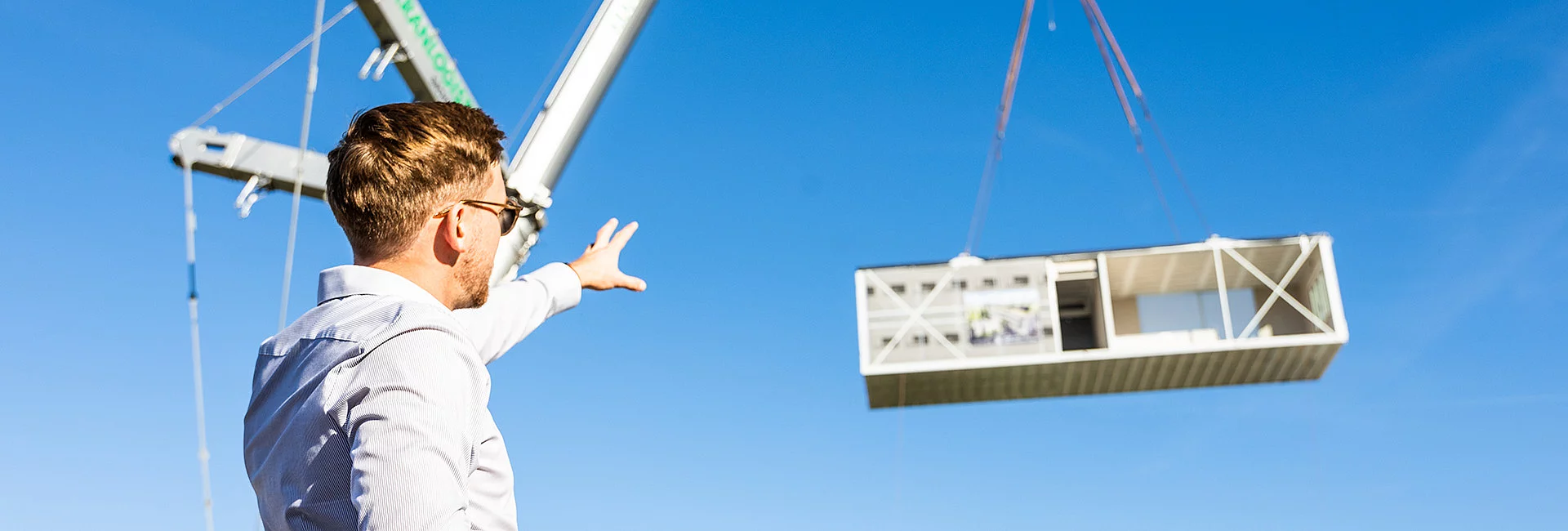 Die Modulbauweise ist eine industrielle Form des Bauens. Ein Großteil der Bauabläufe ist in die Produktionshalle verlegt, welche die Module mit einem Vorfertigungsgrad von bis zu 90 % verlassen. Dies bedeutet, dass nur ein geringer Teil des Bauens tatsächlich auf der Baustelle stattfindet. Die Bauzeit vor Ort beträgt von der Modulmontage übe das Finishing des Innenausbaus und der Fassade in der Regel nur ca. 10 bis 12 Wochen. Die Lärm- und Schmutzbelastung auf der Baustelle wird auf ein Minimum reduziert. Die Modulbauweise eignet sich daher auch besonders für das Bauen im Bestand, die der Betrieb ohne Beeinträchtigungen durch Baulärm oder -schmutz weiter laufen kann.