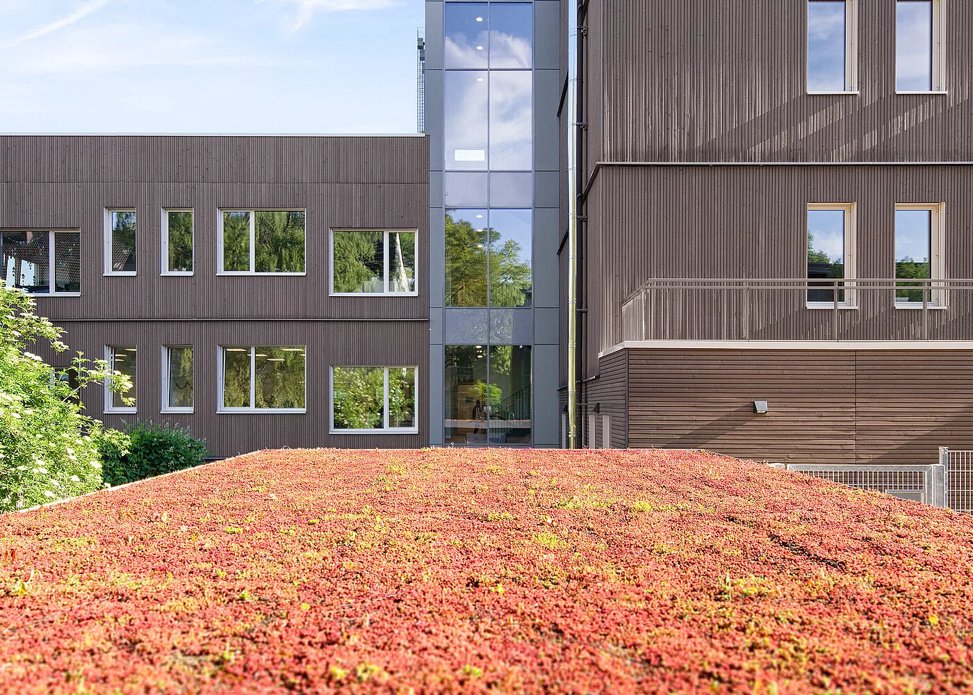 Die Wahl nachhaltiger Materialien wie Cradle-to-Cradle-zertifizierte Bodenbeläge, Fassadenbegrünung und energieeffiziente Fenster unterstreicht den zukunftsorientierten Charakter des Projekts. Auch die Split-Level-Bauweise ist Ausdruck eines durchdachten Raumkonzepts, das die optimale Nutzung der verfügbaren Fläche ermöglicht.