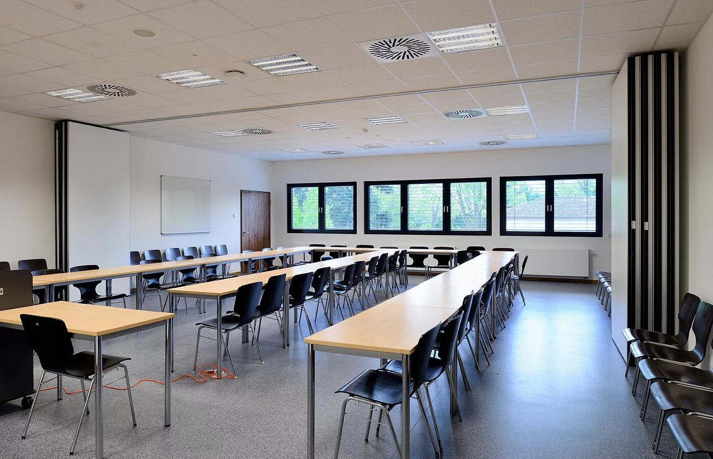 Auch den kreativen Gestaltungsmöglichkeiten sind mit der Systembauweise keine Grenzen gesetzt. So unterteilt sich die Gebäudestruktur des Pavillons in drei klar ablesbare Zonen mit flexiblen Räumen unterschiedlichster Größe – in Servicezone, Erschließungs- und Kommunikationszone sowie eine Raumspange mit Seminarräumen. Dieser funktionale Aufbau ist nicht nur wirtschaftlich, sondern bietet den 720 Studenten aller Fachrichtungen, die sich bei Vollauslastung im Gebäude aufhalten, einfache Orientierung und gute Nutzbarkeit.