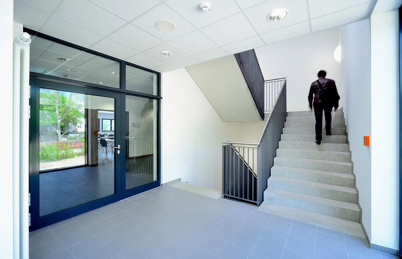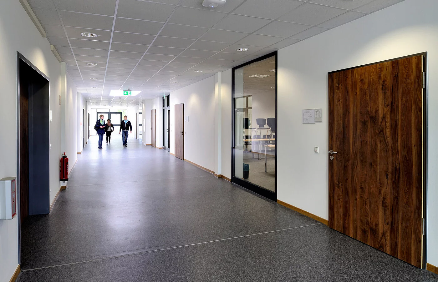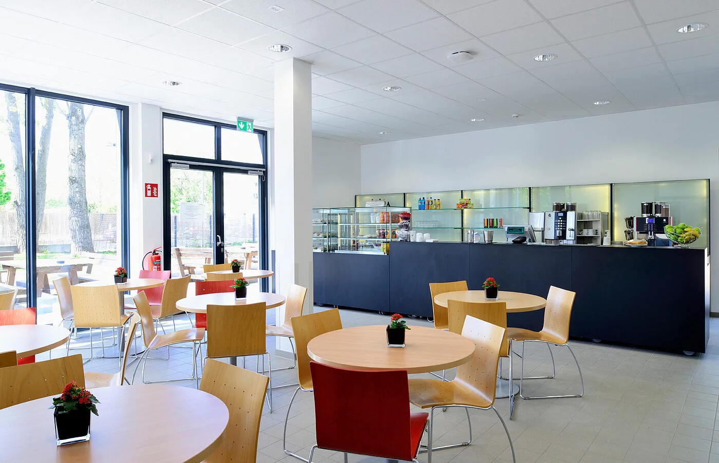 „Der Pavillon kommt bei Mitarbeitern und Studenten gut an,“ bestätigt Esref Yavuz. „Vor allem die erstklassigen Materialien und deren hohe Ausführungsqualität – wie beispielsweise die Türen mit Holzfurnier sowie die großzügigen innenliegenden Verglasungen im Bereich der Flurzonen – sorgen für ein angenehmes Raumgefühl in einem Gebäude, in dem man sich gerne aufhält.“ Und weil Lernen und Lehren nicht alles ist, kommen auch Kommunikation und Entspannung nicht zu kurz. Mit ihrer einladenden Pfosten-Riegel-Fassade und dem großen Terrassenbereich ist die Cafeteria im Erdgeschoss zu einem beliebten, kommunikativen Treffpunkt auf dem Campusgelände geworden.