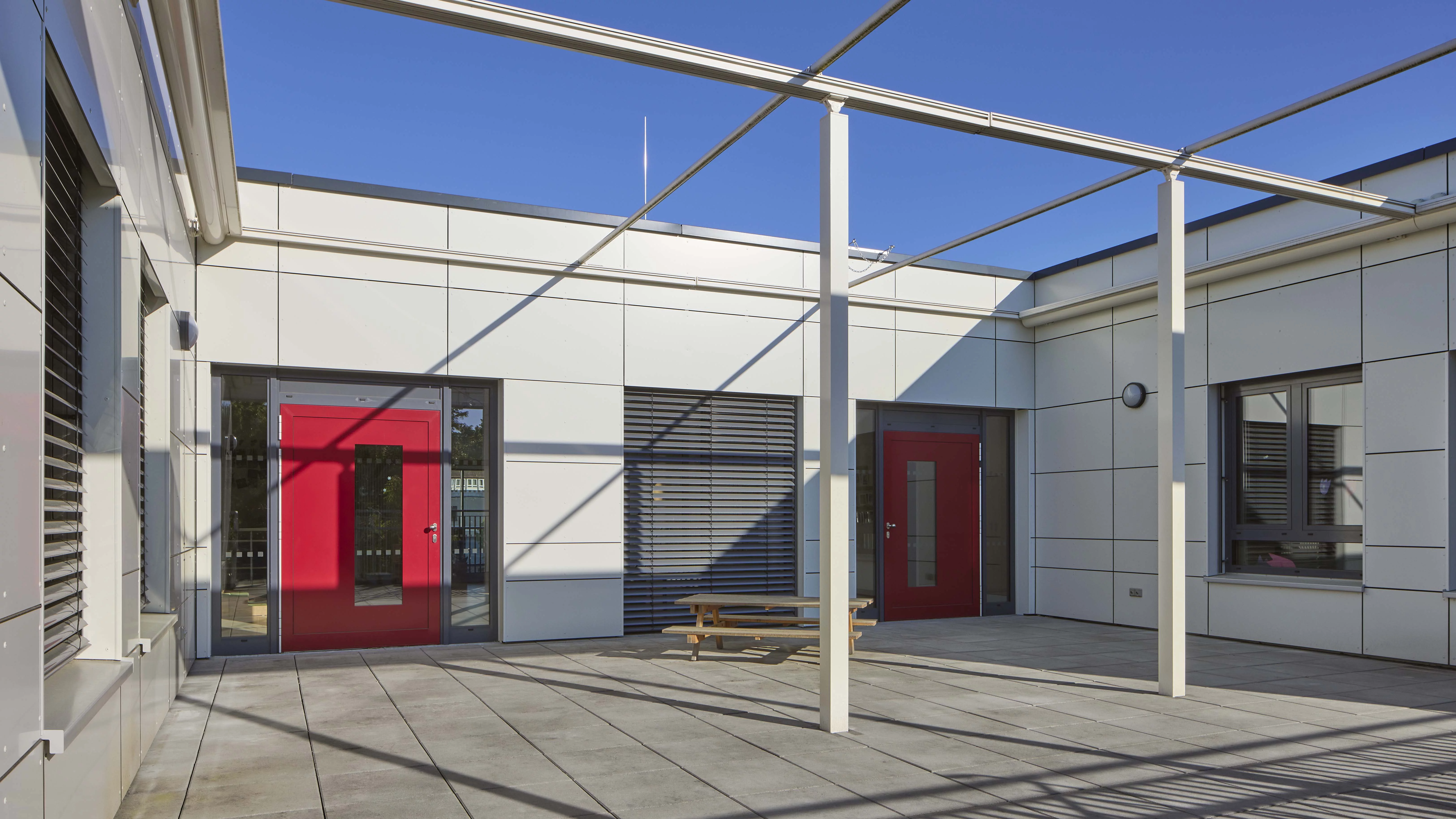 Die Kita verfolgt das pädagogische Konzept des „Early Excellence“-Ansatzes und legt den Schwerpunkt auf naturwissenschaftlich-technisches Lernen. Durch eine enge Kooperation mit dem Phaeno Wolfsburg und einer benachbarten städtischen Kita entstehen vielfältige Bildungsimpulse. Die modulare Bauweise ermöglichte dabei eine maßgeschneiderte Raumstruktur, die dieses offene, kindzentrierte Konzept optimal unterstützt. Innen wie außen bietet die Kita zahlreiche altersgerechte Anregungen zum Forschen, Experimentieren und Entdecken. Besonderes Augenmerk lag auf einer kindgerechten Gestaltung mit viel Tageslicht, hellen Räumen und einer naturnahen Außenspielfläche mit Schaukel, Matschanlage, Werkbank und Kletterturm. Auch energetisch ist die Einrichtung vorbildlich: Eine Photovoltaikanlage auf dem Dach unterstützt die Stromversorgung.