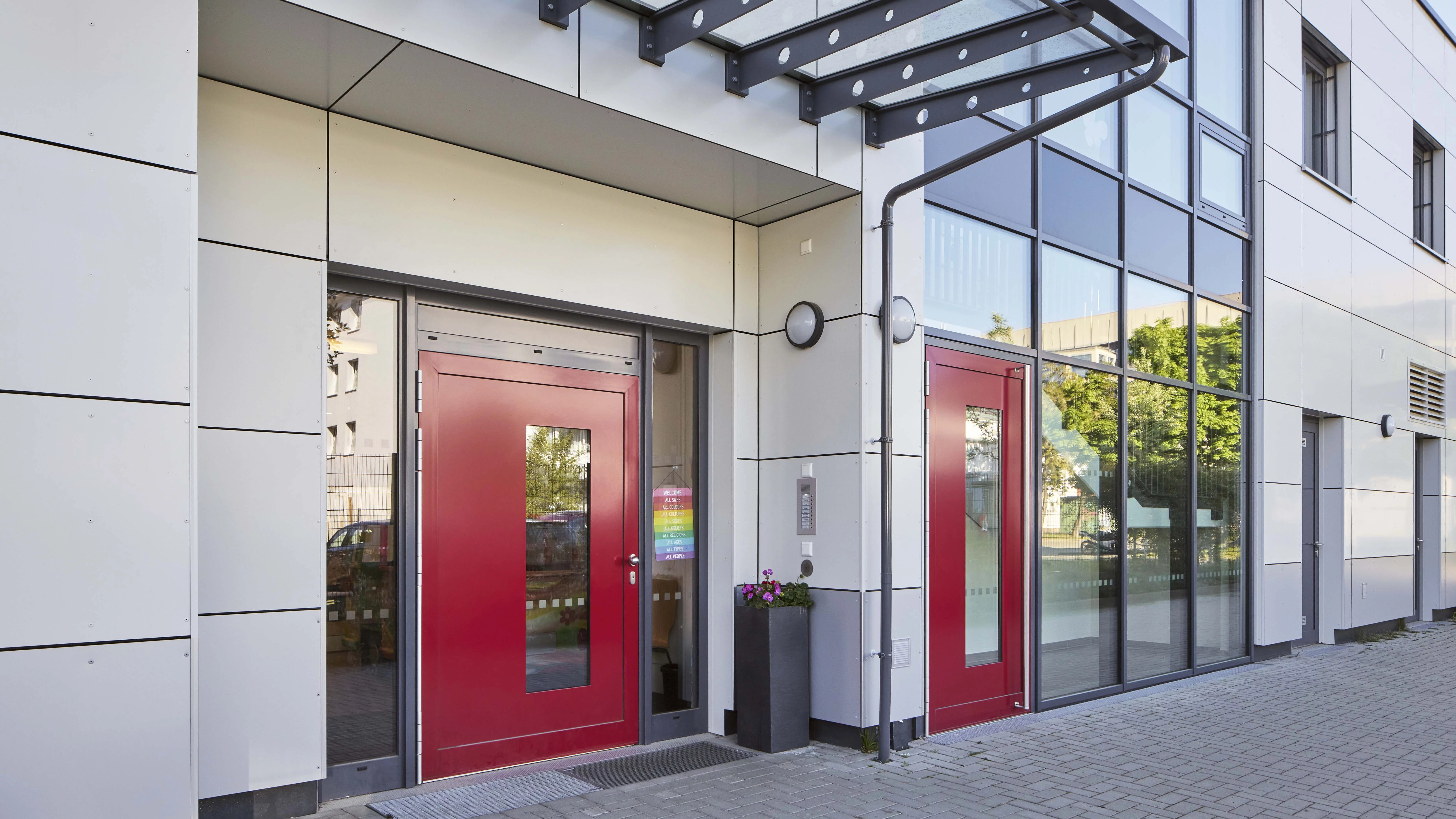 Im Auftrag der Stadt Wolfsburg realisierte ALHO auf dem Gelände der ehemaligen Ferdinand-Porsche-Realschule in der Kolpingstraße eine innovative Kindertagesstätte in Modulbauweise. Der zweigeschossige Neubau bietet Raum für vier Gruppen mit insgesamt rund 90 Betreuungsplätzen und wurde passgenau auf die Anforderungen eines modernen pädagogischen Konzepts zugeschnitten.