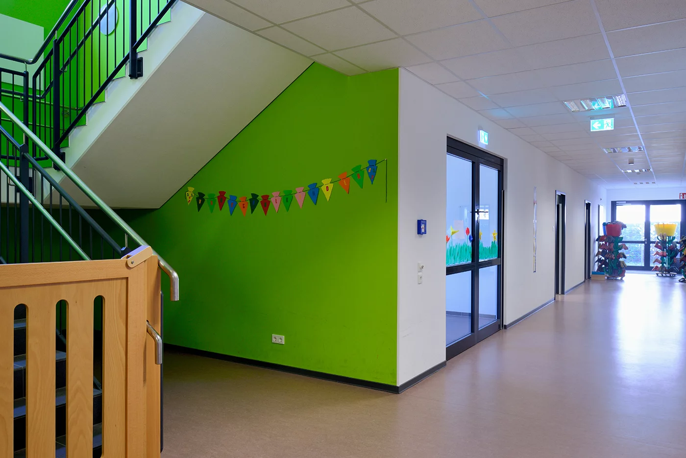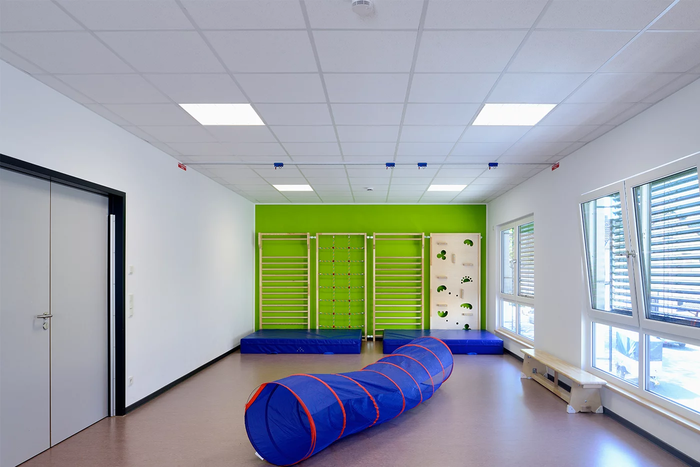 Der lichtdurchflutete Neubau bietet insgesamt 80 Kindern beste Voraussetzungen zum Spielen und Lernen.