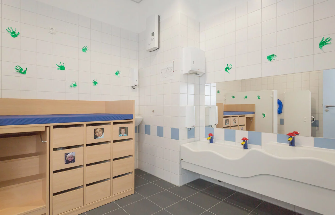 In der Weissacher Boschstraße, in unmittelbarer Nähe zu Wiesen und Gartengrundstücken, ist ein freundliches und abwechslungsreiches Kinderhaus entstanden. Nach einem Entwurf des Architekten Hartmut Bromberger trat ALHO die komplette Planung und Realisierung des Modulgebäudes an. Seit Juli 2014 können nun auf zwei Etagen mit jeweils rund 1.000 Quadratmetern Fläche 65 Kinder in sechs Gruppen betreut werden. Hell und offen ist die neue Kindertagesstätte gestaltet. Jede Gruppe hat einen eigenen Bereich mit einem großen Gruppenraum, sowie einen separaten Schlaf- und Waschraum.