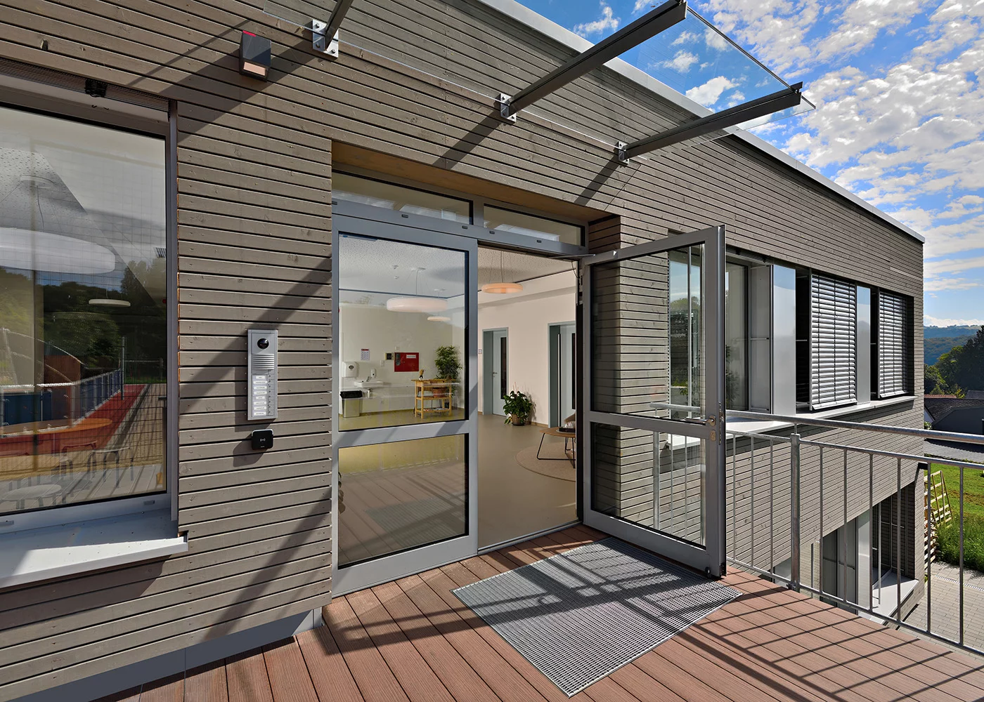 In dem zweigeschossigen Gebäude, das sich durch eine helle und lichtdurchflutete Architektur auszeichnet, wird eine hervorragende Betreuungs- und Lernumgebung für Kinder im Alter von 3 bis 12 Jahren geschaffen. Es verfügt über eine Vielzahl von Räumlichkeiten, darunter Büros, Personalräume, Theaterräume, Projekt- und Kreativräume, eine Küche, einen Jugendraum und einen Medienraum. Mit einer Aufnahmekapazität von 120 Plätzen wurde das Maison Relais sorgfältig konzipiert, um den Bedürfnissen der Gemeinde und der Nutzer gerecht zu werden. Dank der nahtlosen Integration in den bestehenden Schulcampus, einschließlich Nebengebäuden, Sportgeräten und einem Spielplatz, ist die Einrichtung ein integraler Bestandteil des Bildungskomplexes. Planung und Umsetzung erfolgten in enger Zusammenarbeit mit der Gemeinde und den Nutzern, um sicherzustellen, dass der Bedarf und die Anforderungen in höchstem Maße erfüllt werden. Das Design wurde optimal an die Bedingungen angepasst, wobei die Vorentwürfe des externen Architekten berücksichtigt wurden. Durch die harmonische Einbettung des Gebäudes in den Hang wurde eine organische Verbindung mit der umgebenden Landschaft erzielt. Eine Photovoltaikanlage trägt zur Nachhaltigkeit des Gebäudes bei und unterstreicht das Engagement für umweltfreundliche Lösungen. Die Kita in Rosport ist nicht nur ein Ort des Lernens und der Betreuung, sondern auch ein Symbol für Innovation, Funktionalität und Design.