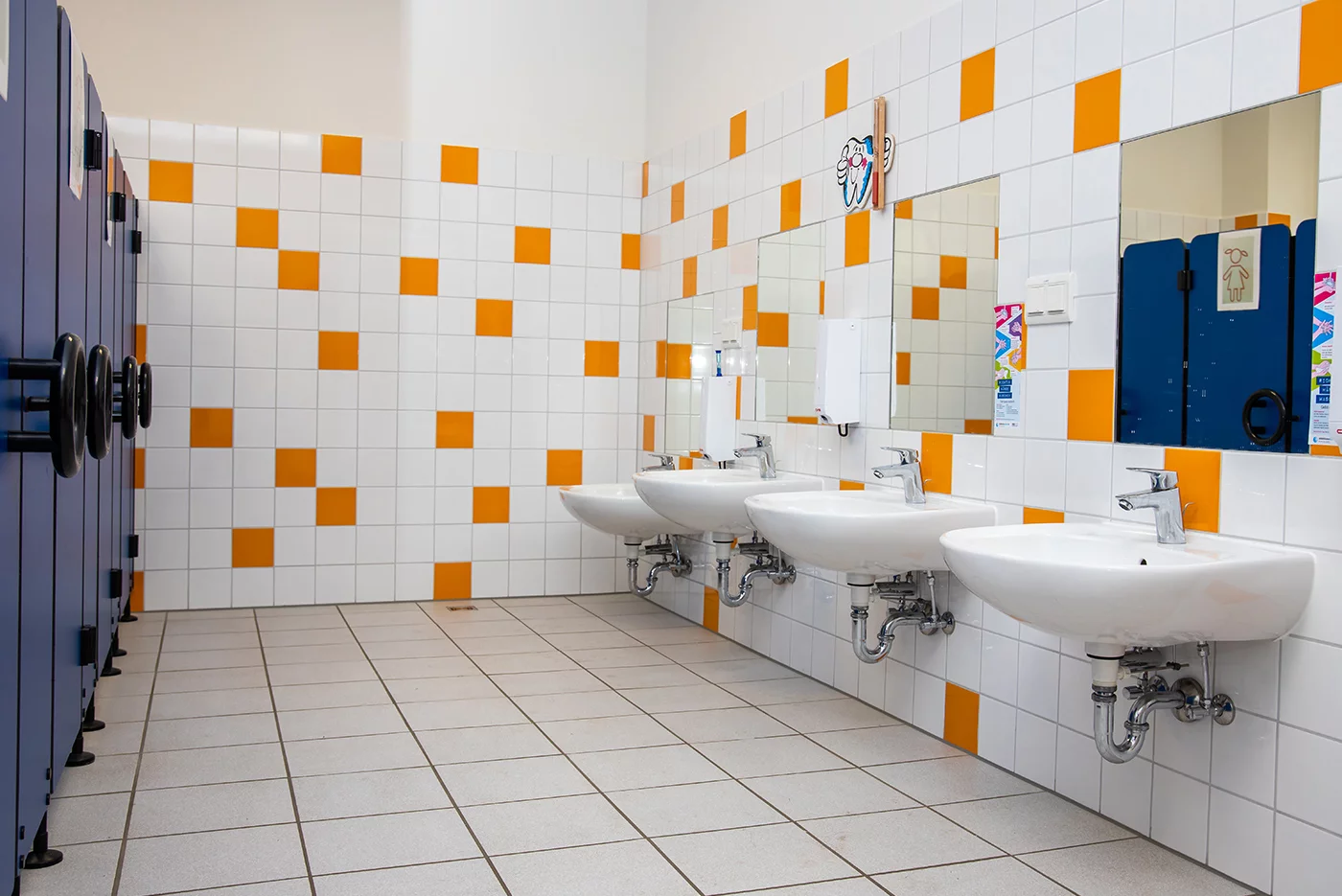 Die vier Gruppenräume der Kindergartenkinder, die Hort- und Hausaufgabenräume der Grundschulkinder sowie Personal- und Aufenthaltsräume befinden sich im Obergeschoss. Dort gibt es auch eine Kinder-Küche, in der die Kleinen zusammen mit den Erziehern selbst kochen und backen können. Nur knapp mehr als ein halbes Jahr dauerte die Realisierung des Gebäudes vor Ort und das, obwohl die Ausgangsbedingungen alles andere als einfach waren: So musste beispielsweise zu Beginn der Baugrund statisch verbessert und mit an die 100 Betonsäulen tragfähig gemacht werden, bevor mit dem Bau des Gebäudes überhaupt begonnen werden konnte. Als Generalübernehmer koordinierte ALHO auch diese Arbeiten.