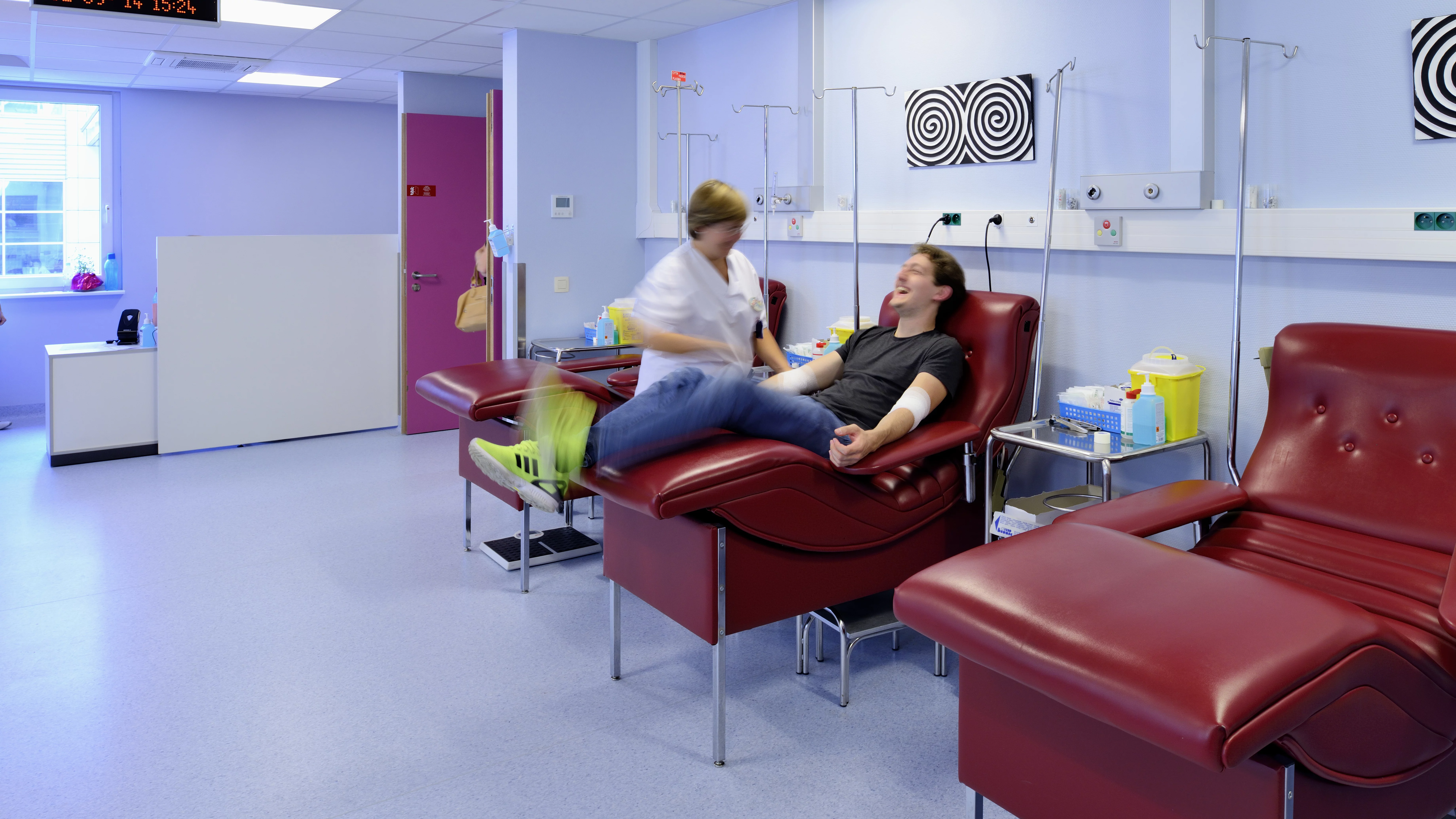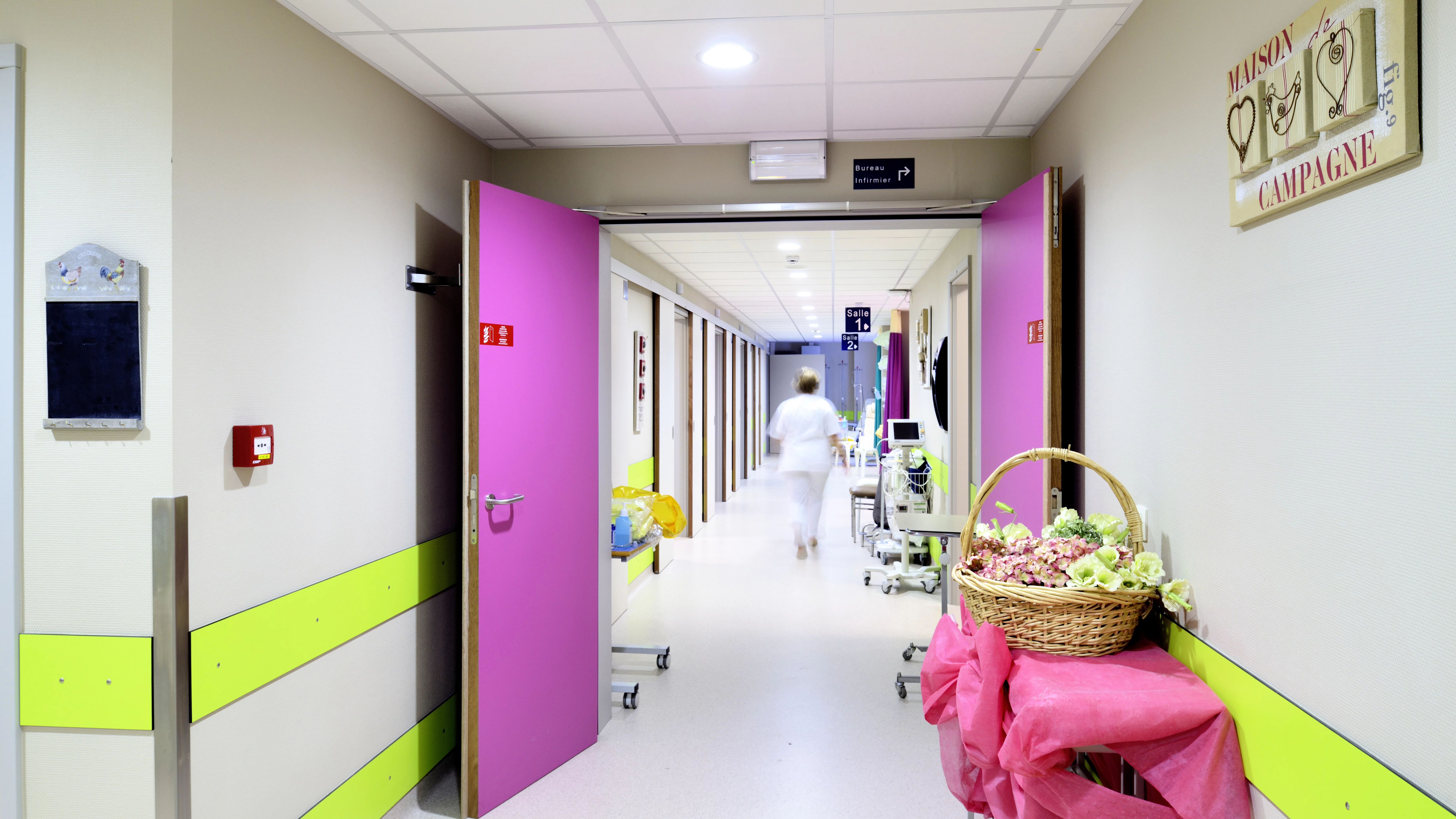 Einen zweigeschossigen Erweiterungsbau in einem engen Innenhof, der zwischen bis zu siebengeschossigen Bestandsgebäuden gelegen ist, zu errichten und das Ganze aufgesetzt auf eine Bestandsetage mit weitestgehend stützenfreien Hörsälen – so sah die Bauaufgabe aus, der sich ALHO bei der Klinikerweiterung St. Luc in Brüssel stellen musste. Während bei der öffentlichen Ausschreibung Mitbewerber schon im Vorfeld die Flügel streckten, arbeitete ALHO ein Konzept aus, das neben der passgenauen Realisierung des Entwurfs in Modulbauweise vor allem die komplizierte logistische Umsetzung von Anfang an mit einbezog. Während der Anlieferung und Montage vor Ort in nur 4 Tagen und der anschließenden Ausbauzeit der Module konnte der Betrieb am Klinikum ungehindert weiterlaufen. Schon in dieser Phase profitierten die Mitarbeiter und Patienten von der lärm- und schmutzarmen Bauweise. Den fast ausnahmslos schwerkranken Patienten der hämatologischen Abteilung sollte in dem 800 Quadratmeter Bruttogeschossfläche umfassenden Neubau eine funktionale und dabei vor allem doch Vertrauen schaffende Architektur begegnen. An einer Stirnseite dockt der Neubau an das Bestandsgebäude an. Der fast 49 Meter lange Riegel beherbergt im Erdgeschoss eine Reihe individueller Behandlungsräume, in denen sich Arzt und Patient zur Untersuchung und Beratung treffen. Hinter dem zentralen Treppenhaus weitet sich der Grundriss zu einem Dialyse-Therapiesaal mit Wartezimmer und Sanitärzone auf. Ergänzend sind Büro-, Verwaltungs- und Lagerräume in der oberen Etage untergebracht.