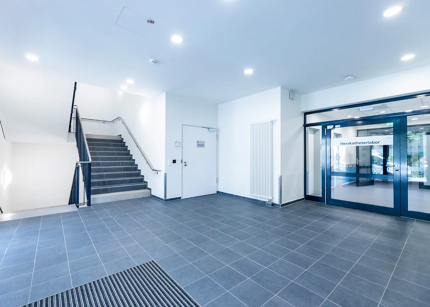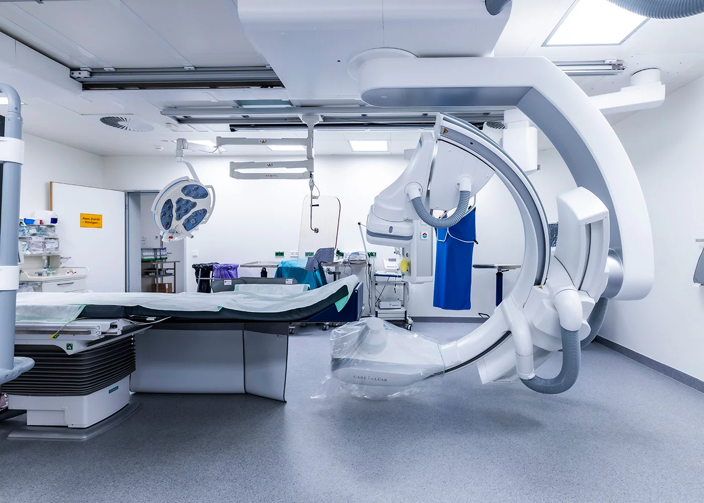 Im Erdgeschoss befinden sich zwei Herzkatheterlabore, im ersten Obergeschoss eine urologische Ambulanz und im zweiten Obergeschoss eine urologische Klinik. Das Untergeschoss dient der Technik, der Logistik und bietet einen Übergang zu den klinischen Bestandsgebäuden auf dem Campus. Ausgestattet ist das Gebäude mit modernster Medizintechnik, darunter zwei Herzkatheter-Messplätze mit Schwerlastdecken, Klimaanlage, aufwendige Raumlufttechnik, automatische Schiebetüren, Strahlenschutz sowie eine urologische Praxis mit Röntgengerät. Besonderes Augenmerk wurde auf die Nachhaltigkeit des Gebäudes gelegt: Es ist so konzipiert, dass es in etwa zehn Jahren umgenutzt und gegebenenfalls an einen anderen Standort versetzt und wieder aufgebaut werden kann. Und das ist nur einer der zahlreichen Vorteile unserer Modulbauweise.