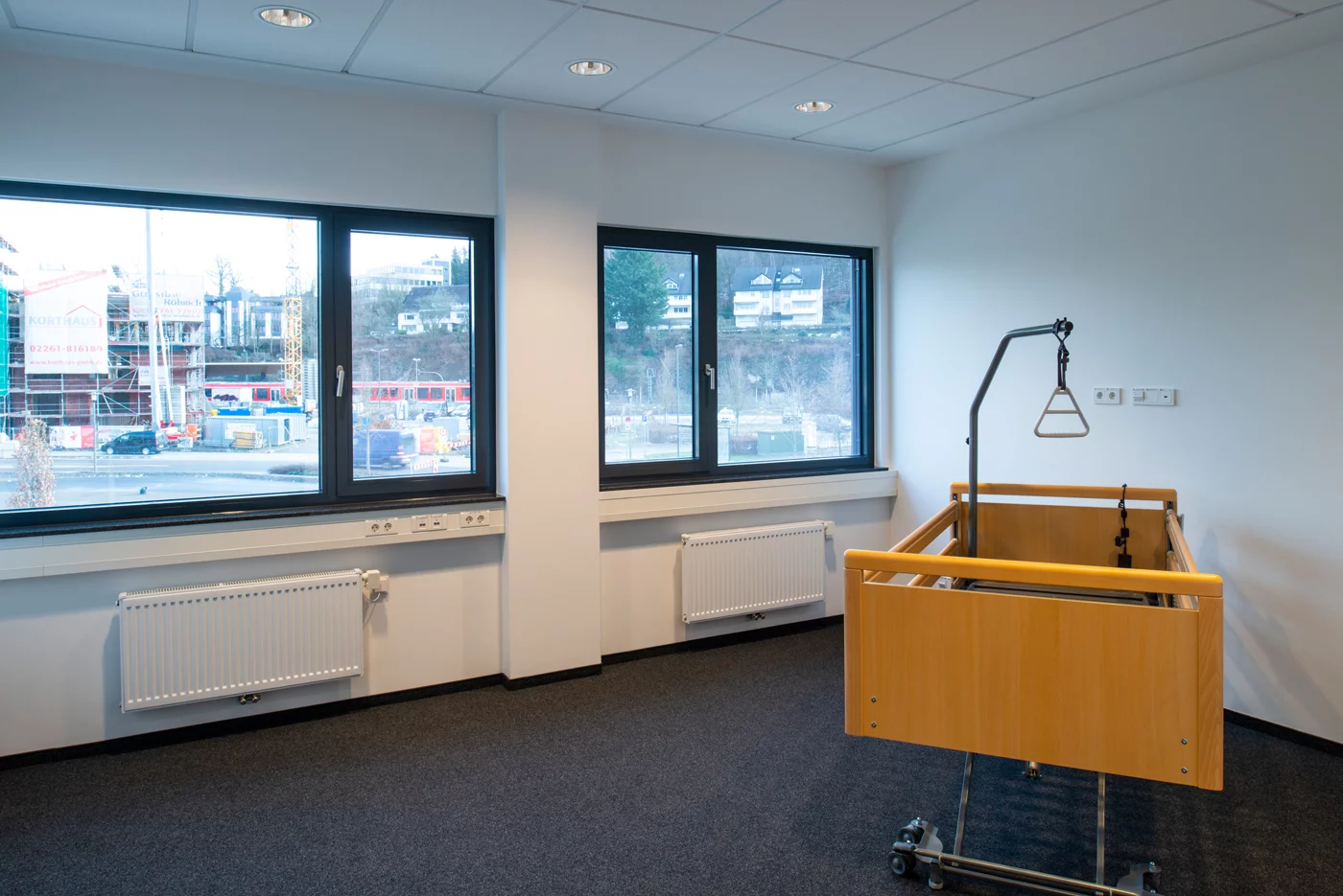 Um keine wertvolle Zeit durch langwierige konventionelle Bauprozesse zu verlieren, setzten die Verantwortlichen dabei auf die moderne ALHO Modulbauweise: Von der Gründung bis zur Fertigstellung des Viergeschossers dauerte die Bauzeit nur rund neun Monate. Mit 3.700 qm Bruttogeschossfläche stellt der neue Bildungsbau einen wichtigen Meilenstein für die Nachwuchssicherung dar. Unterschiedlichste Fort- und Weiterbildungen unter anderem für das Gesundheits- und Pflegemanagement, die Pflegepädagogik und Palliative Care werden hier künftig stattfinden. Außerdem wird es umfassende Angebote für den Rettungsdienst und die Notfallmedizin geben. Nach Auftragsvergabe wurde der Gebäudeentwurf des Oberbergischen Kreises vom ALHO Planungsteam in ein Modulbauraster gegliedert und die Werkplanung erstellt. 72 Raummodule wurden im ALHO Werk in Morsbach produziert und fanden mit einem hohen Vorfertigungsgrad von 70 Prozent ihren Weg auf die Baustelle. Drei Wochen dauerte die Modulmontage, danach folgte der hochwertige Innenausbau.