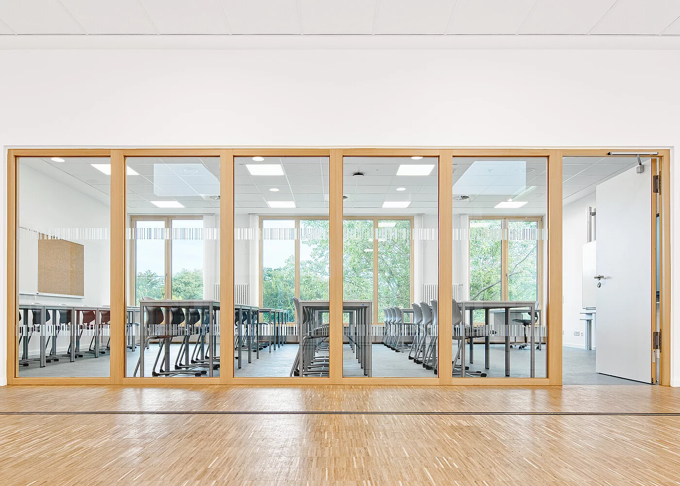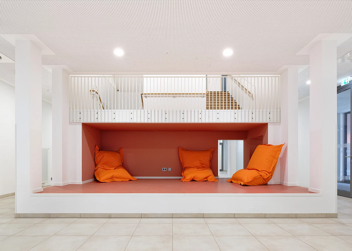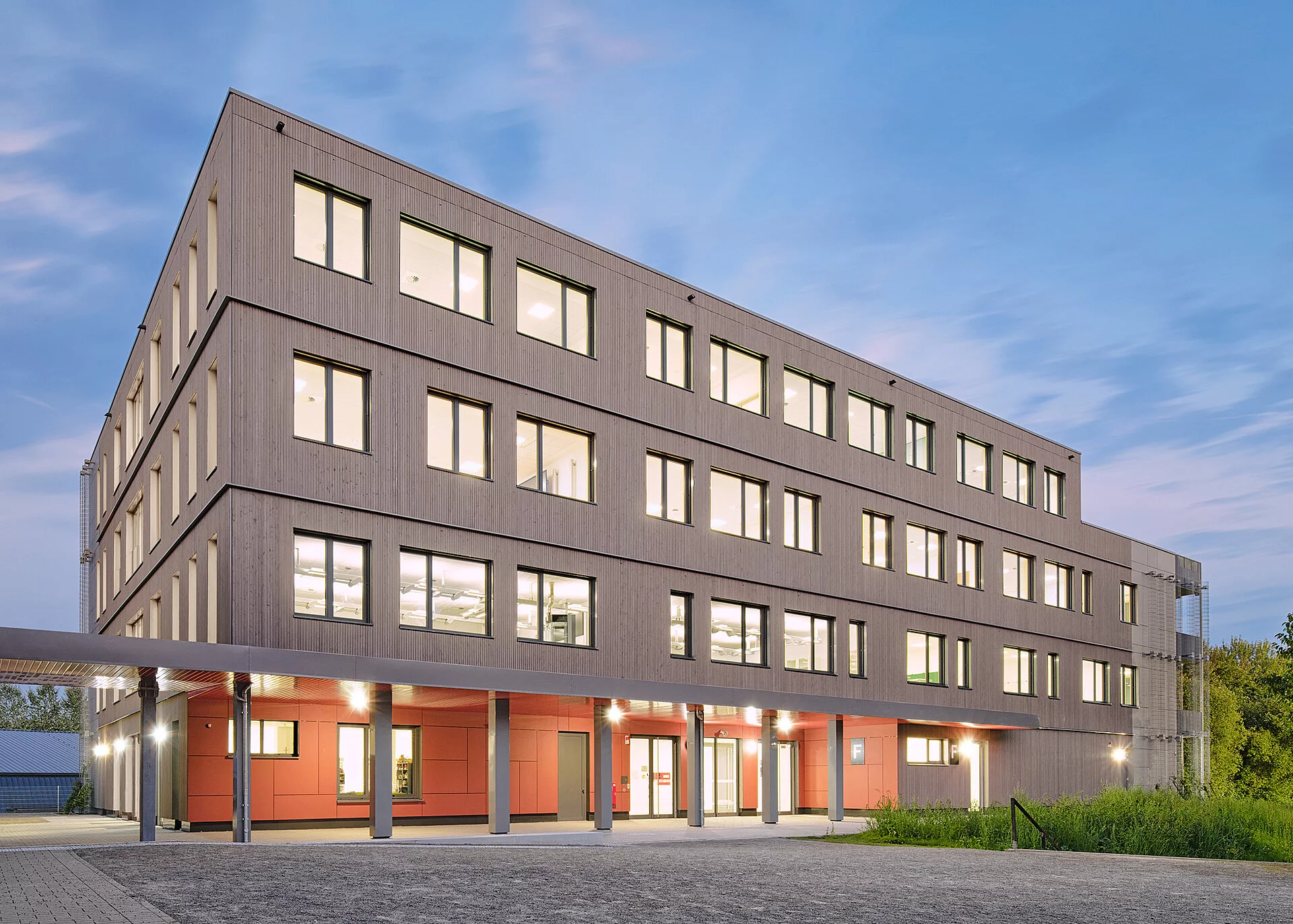 Das Gebäude wurde von ALHO als Totalunternehmer errichtet, während die Architektur von unserem langjährigen Partner futur.drei Planer GmbH entworfen wurde. Der Modulneubau ergänzt die Bestandsgebäude auf dem Schulgelände und setzt ein modernes, räumlich-pädagogisches Konzept um. Als Clusterschule konzipiert, bietet das Gebäude sowohl Klassenräume als auch naturwissenschaftliche Fachräume, darunter Räume für Physik, Chemie und ein Maker-Space-Labor. Daneben sind Flächen für einen Kiosk, ein Forum, Betreuungsräume und einen Verwaltungstrakt integriert.