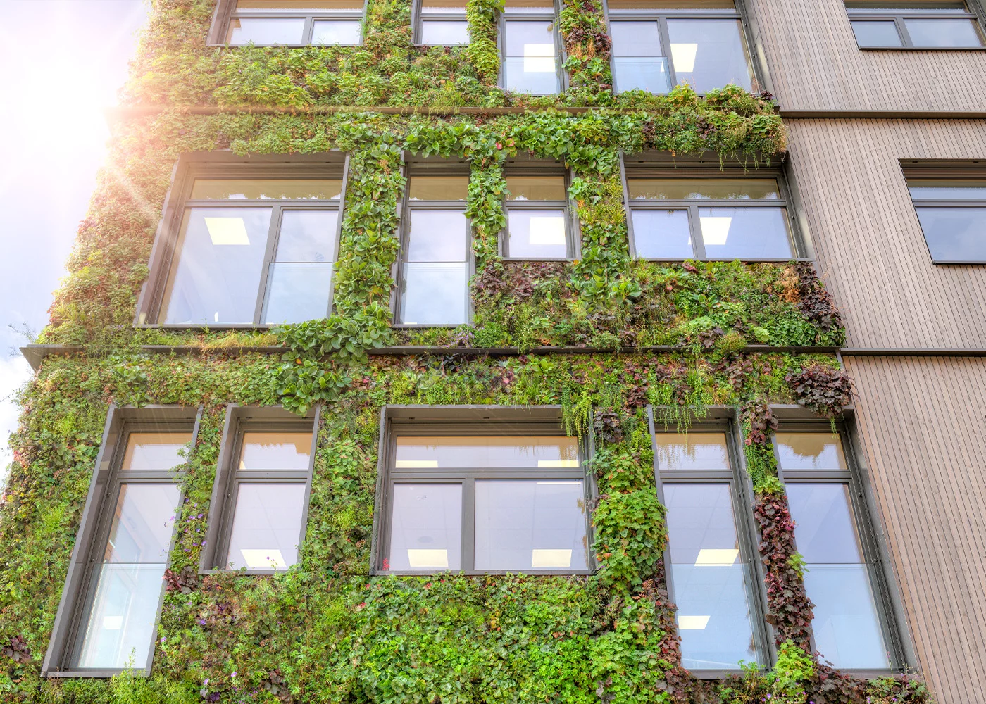 In Zusammenarbeit mit den Planern von futur.drei Planer GmbH wurde ein Konzept für die Gestaltung des Neubaus entwickelt, das sich durch Transparenz und Helligkeit auszeichnet. Zwei Atrien und breite Fensterflächen sorgen für eine freundliche und lichtdurchflutete Atmosphäre. Die unterschiedlichen Nutzungen im Inneren sind durch die offene Fassadengestaltung von außen gut sichtbar. Das Gründach mit extensiver Begrünung sowie zwei eingefasste grüne Fassadenelemente auf der Dachterrasse runden das nachhaltige Gesamtkonzept ab. Die Dachlandschaft ist optisch ansprechend, ökologisch wertvoll und fügt sich harmonisch in das städtebauliche Umfeld ein.