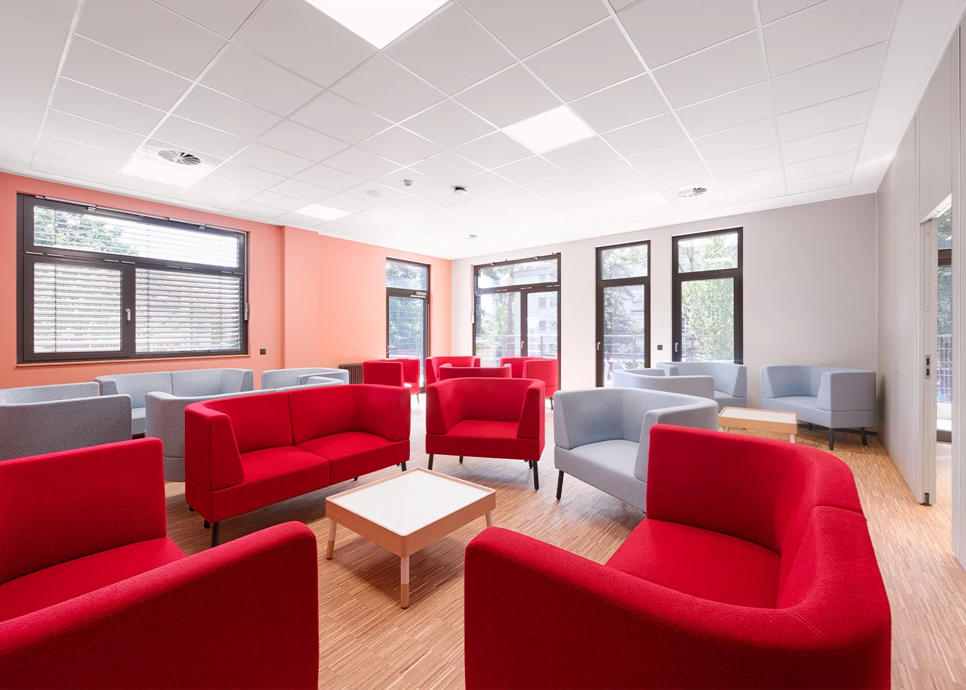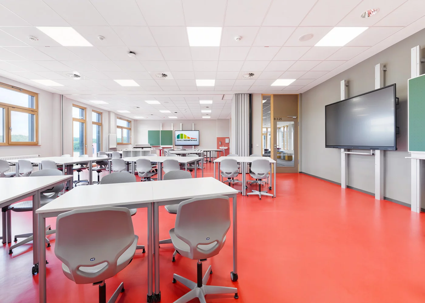 Durch das Clusterkonzept wird die pädagogische Flexibilität gefördert: Gemeinsames Lernen und Arbeiten wird ermöglicht, gleichzeitig gibt es genügend Rückzugsmöglichkeiten für Phasen der Konzentration. Darüber hinaus verfügt das Gebäude über zahlreiche Räumlichkeiten wie Sprachförderräume, einen Musikübungsraum, eine Bibliothek sowie Besprechungs- und Beratungsräume, Büros und Aufenthaltsräume.