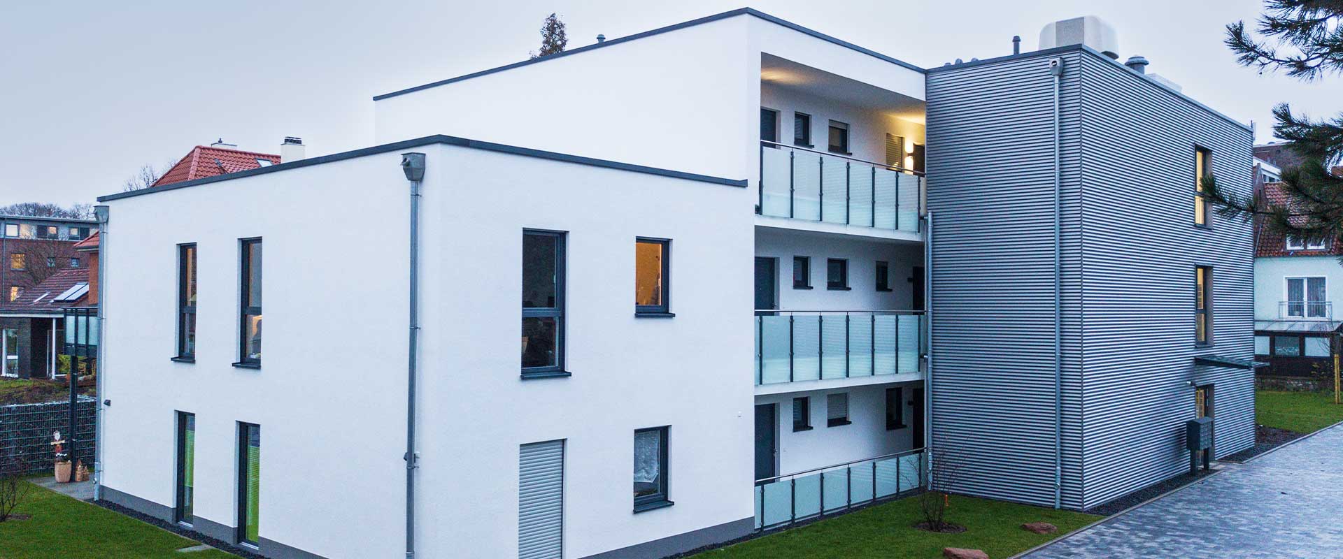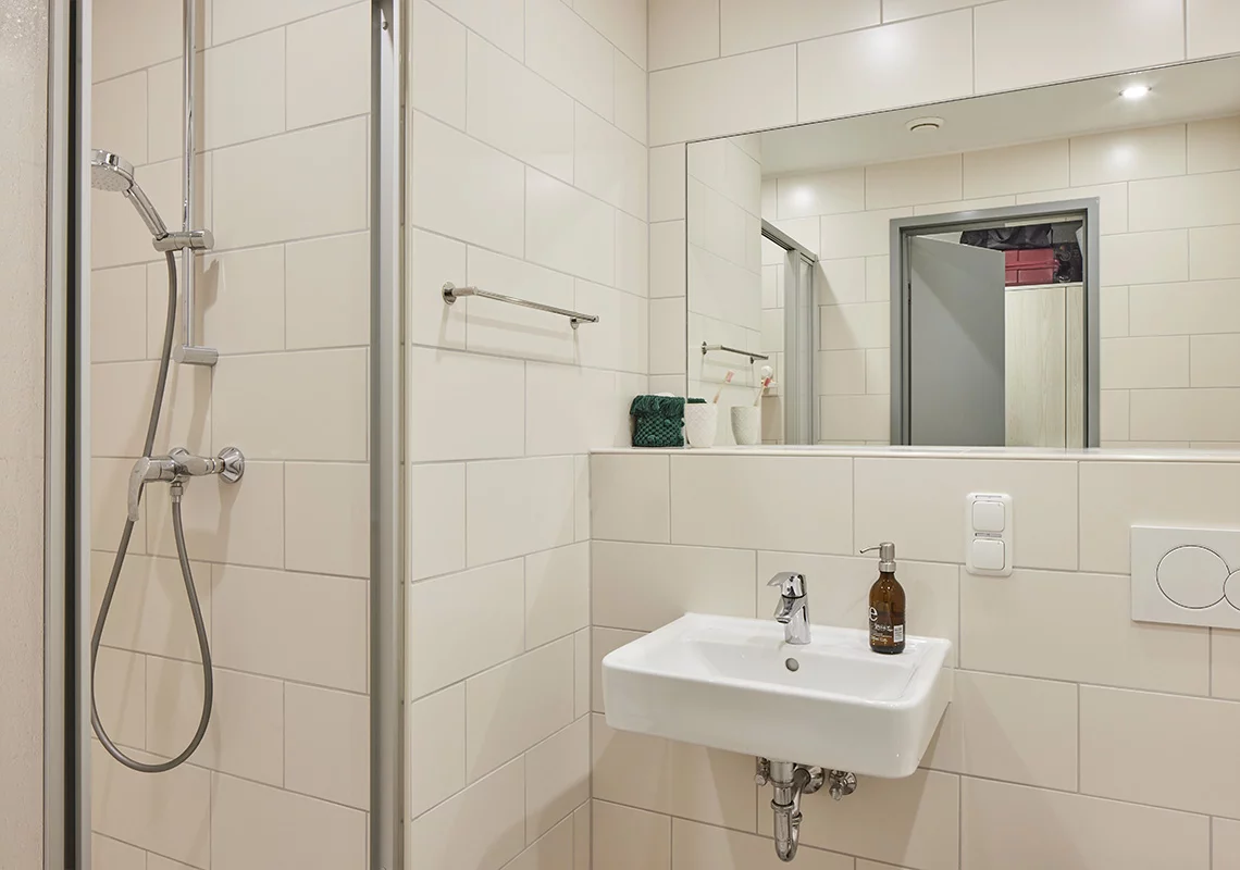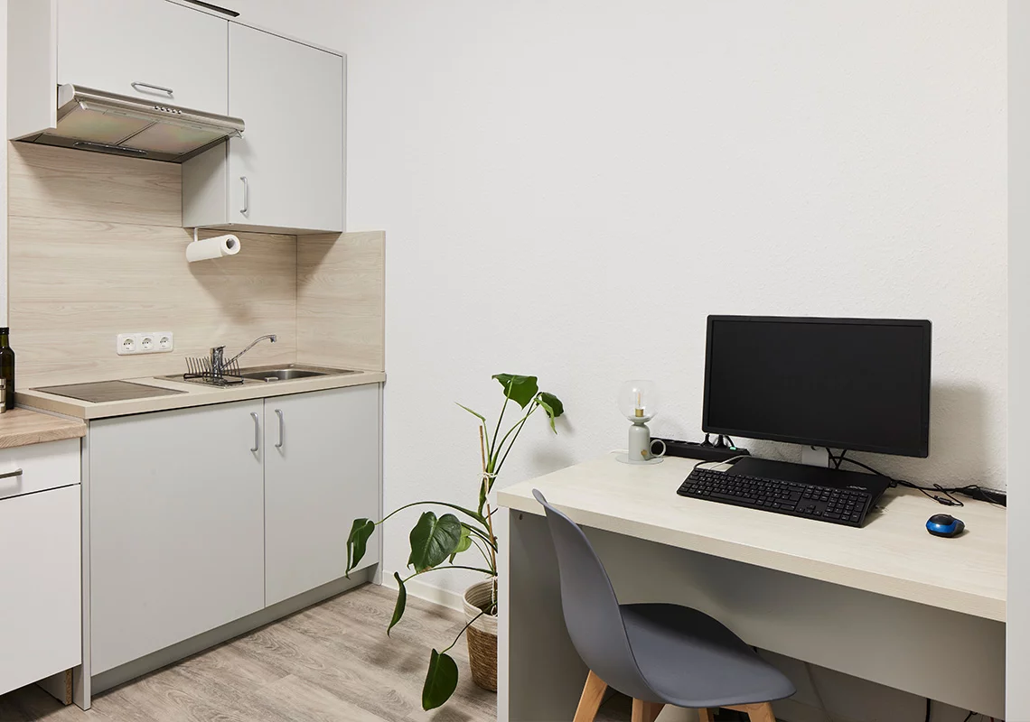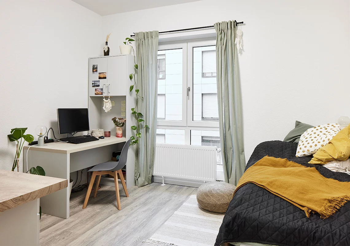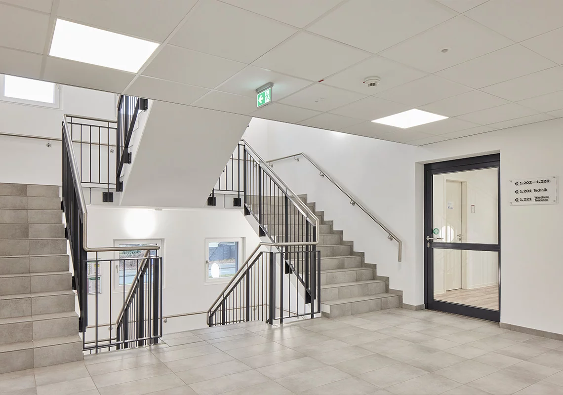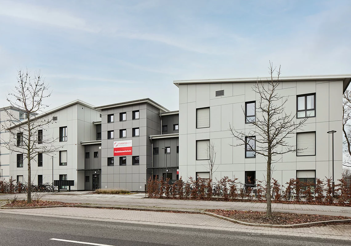 Dieses dreigeschossige Gebäude mit einer Bruttogrundfläche von 3462 Quadratmetern besteht aus zwei Flügeln mit insgesamt 114 Einzelapartments. Jeder Flügel verfügt über 19 Apartments pro Etage, die durch ein gemeinsames Treppenhaus verbunden sind, das auch Funktionsräume für Heizung, Warmwasserbereitung, Elektroanlage und Brandmeldung beherbergt. Die Versorgung mit Fernwärme und Trinkwasser erfolgt über den bestehenden Anschluss der angrenzenden Wohnanlage.