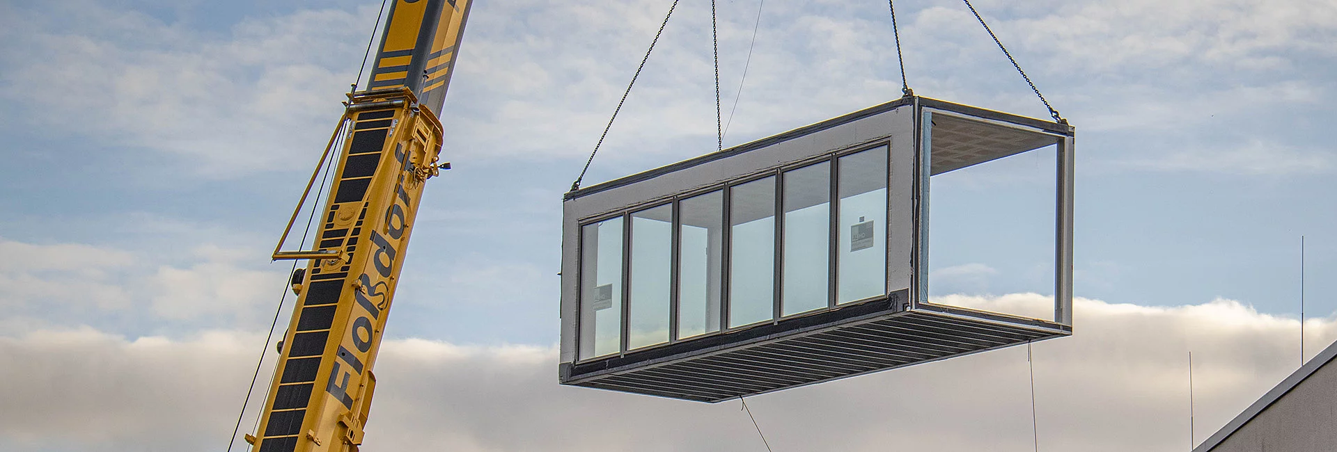 The modular buildings are manufactured on an industrial scale. This offers considerable advantages over conventional construction methods. Shorter construction times thanks to parallel processes and weather-independent production as well as the resulting earlier utilisation options for the buildings and faster refinancing provide a monetary advantage.